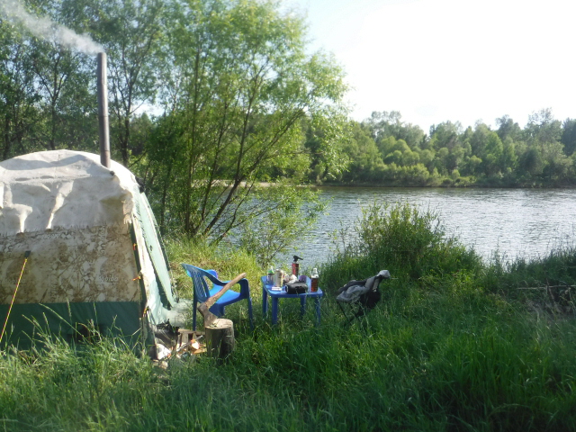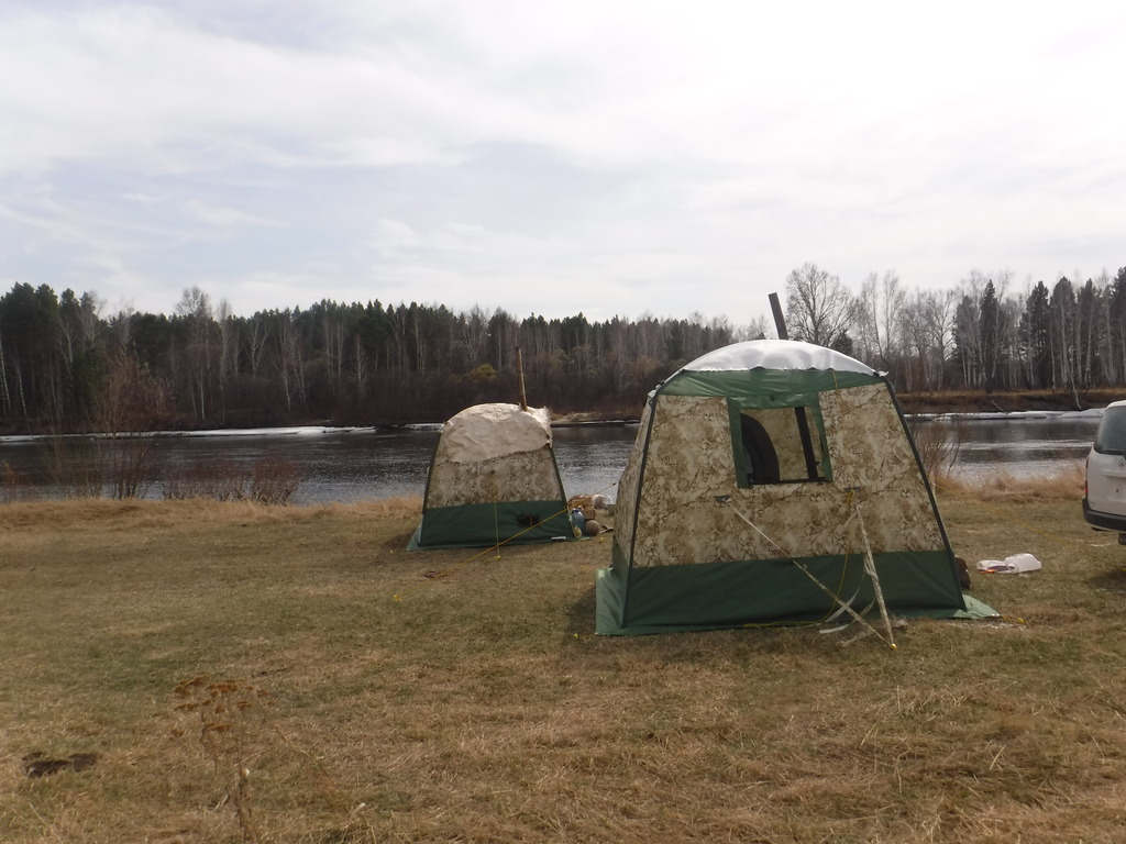 Пришло лето, минимум раз в неделю мы на Белой, и связка Кайфандра для бани и МБ-15 для жилья стала у нас очень востребованой. Небольшой транспортный габарит, скорость установки и удачный размер пятнашки для посиделок и ночёвки.