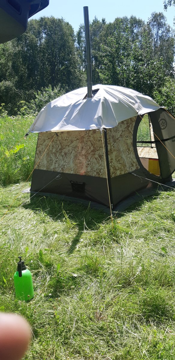 Приветствую уважаемые форумчане ! Хочу поделится с вами своими впечатлениями от палатки бани МБ-10 и печи Жига 2 . Так сложилось , что уже много лет тмы с семьей каждый отпуск отдыхаем по несколько недель на оз. Данилово , на границе Омской и Новосибирской области . Так -как в долгих поездках есть проблема с элементарным желанием помыться да и прогреется ведь иногда погода летом не балует теплом , купание в озере с мылом это не заменит , да и нет желания портить чистоту озера все таки из воду из озера люди берут для приготовления пиши , и нет ни какого желания загрязнять ее мылом , то уже давно назрела необходимость в приобретении бани , после долгих мучений выбора и перелопачивания интернета я остановил свой выбор банях Мобибба . Благодаря подсказкам форумчан я остановился на МБ-10 , а вот с печь пришлось поискать , хотелось КЦ 4 но габариты для меня большевата само то подходила Жига 2 и мне удалось ее найти на авито .В этом году отпуск выпал на июнь , поскольку у нас в Сибири климат не отличается стабильностью то баня пришлась кстати , без нее было бы трудновато ведь погода в июне еще не установилась и в первую недель по приезду на место часто шли дожди и было сыро и промозгло то мы решили погоду в первый же лень погреется и испытать нашу новую покупку баню МБ-10 и печь Жига 2, сказаться что мы в были восторге от использования бани это не сказать ни чего . Благодаря советам с форума с палаткой и печью разобрался быстро , после растопки печи через 10 минут благодаря отменной тяге баня выходит на оптимальный режим и можно спокойно парится ,что мы с удовольствием и делали . Благодаря мягкому пару в бане легко дышится , даже моя жена которая не очень любит баню за две недели нашего отдыха ходила в баню через день и по несколько раз . Получилось так что рядом у наших соседей была баня Морж копия МБ-10 и печь Интент с самодельным коробом для камнямней , сосед очень хвалил свою баню и то что три слоя и печь с камнями , когда я ему сказал что палатка Морж это копия моей палатки МБ-10 он сказал за то она трех слойная , на мой вопрос как он будет сушить свою палатку после дождей он скромно промолчал .Пока мы соседствовали у меня была возможность сравнить обе бани и печи , ответственно заявляю в однослойной палатке дышится легче . За то время пока мы были на отдыхе ко мне много раз подходили люди интересовались баней и печью хвалили качество изготовления палатки , многим очень понравилась баня и я с удовольствием делился своими впечатлениями , и многие выразили желание приобрести себе такую же баню так что возможно владельцев бень Мобибба в г. Омске прибавится .