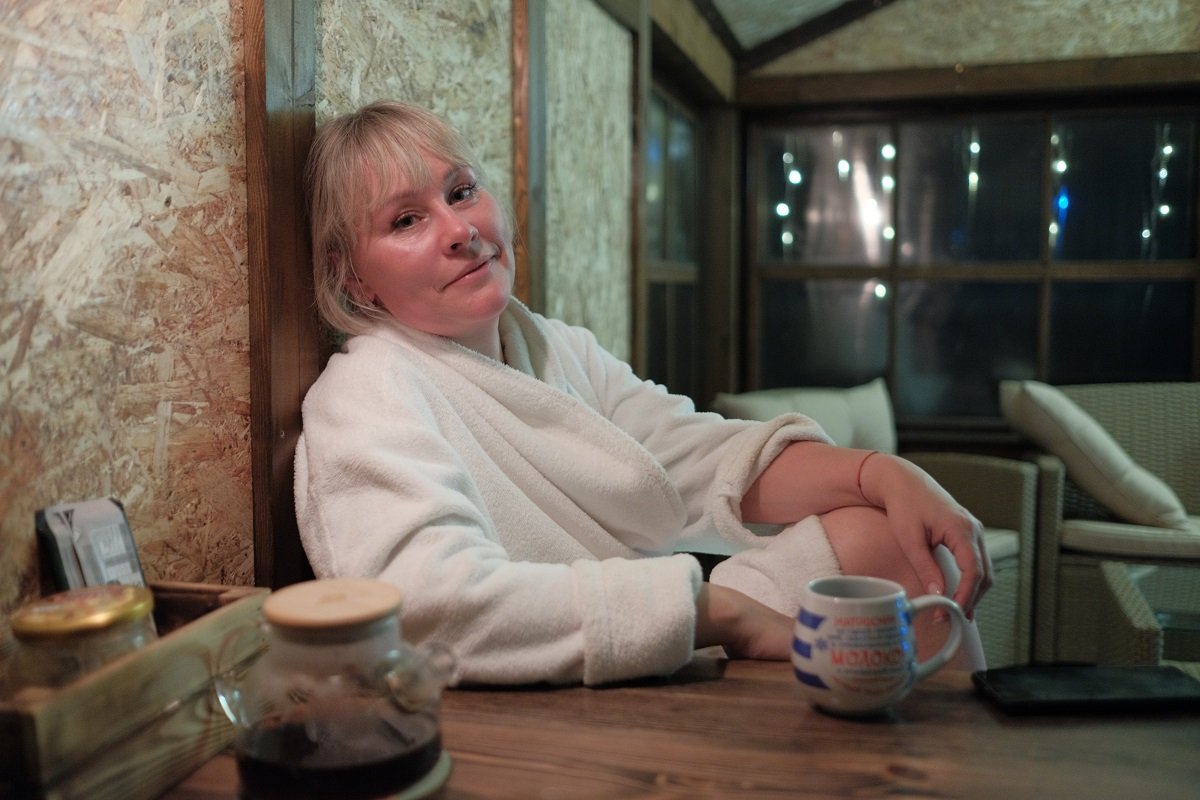 Печь загрузил на старте как обычно 2/3-3/4 от "битком", верхний поджиг, воды холодной налил полный бак.Тут надо немного пояснить для тех, кто не в курсе, в чем отличие холодной воды от горячей на старте печи и влияние этого на кондиции. Если мы наливаем холодную воду, то отодвигаем старт пара по времени от времени поджига, даем ППГ усиленно разогреться и получаем старт пара резкий, мощный, с созданием большого парового пирога. Если наливаем горячую воду или кипяток, то получаем более быстрый старт пара по времени, но не такой интенсивный, с плавным нарастанием общей ощущаемой температуры, ощущаемые кондиции более влажные. Если первый вариант нам, мужикам, вполне подходит, то женская половина в подавляющем большинстве выбирает второй вариант, прям пищат от удовольствия на плавном прогреве в первый заход. И еще подметил, если вот так плавно их(женщин) разогреть, то после сами поднимают планку "жести", а если их с первого захода "поджарить", то мало того, что не дают увеличить температуру, а еще и сокращают время парения при следующих заходах. Ладно, вернемся к теме.