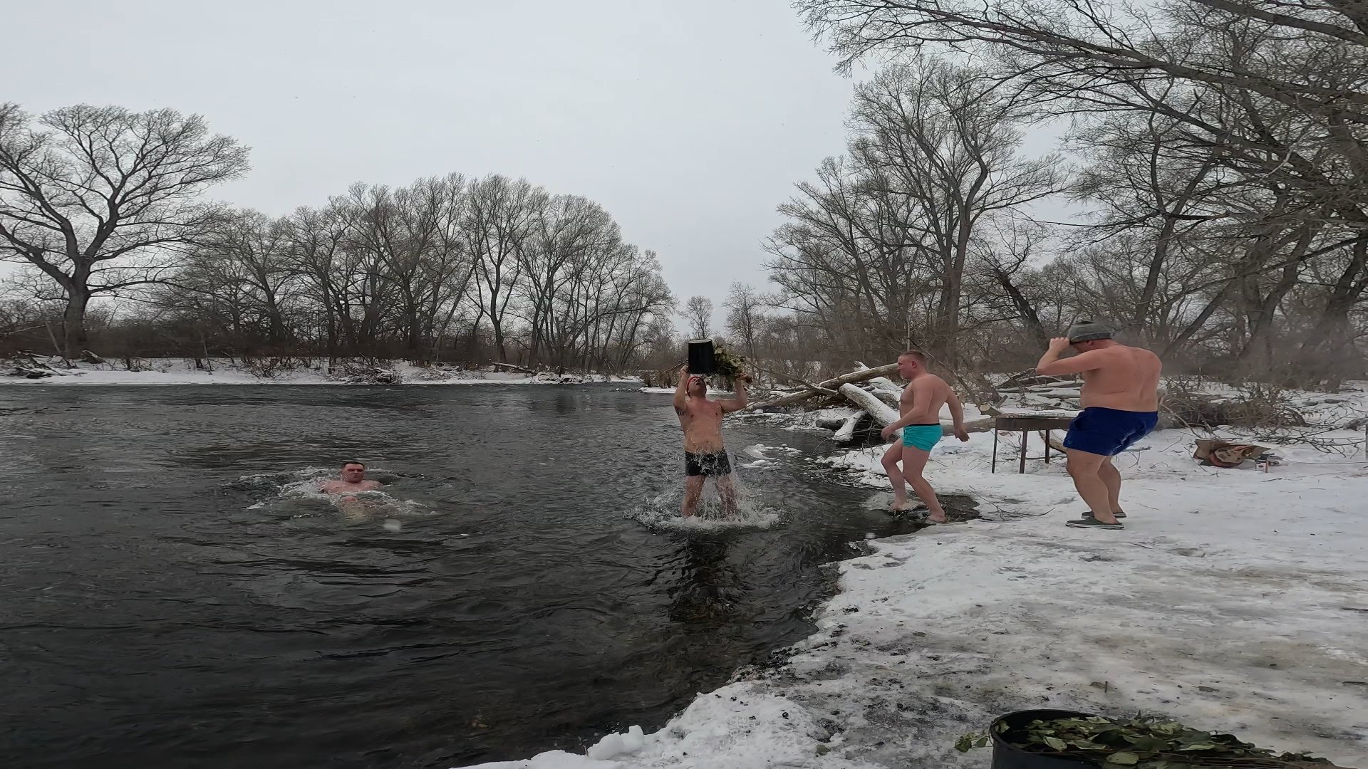 Нас было двое, из тех кто знал что такое мобильная баня зимой, остальные побаивались ледяной воды. Кайфанули и домой.