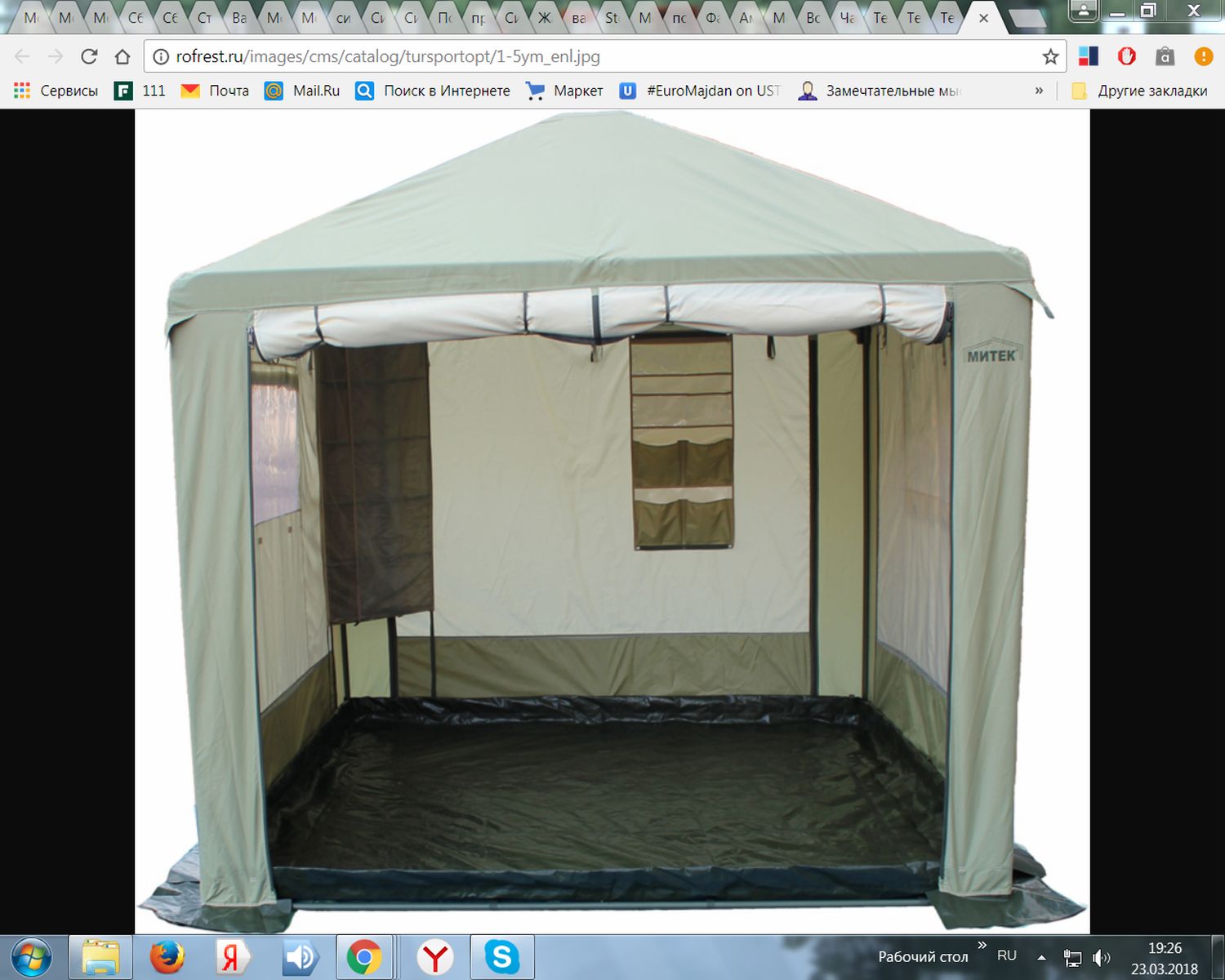 имеющий самый тяжёлый и прочный каркас. Трубы между собой были не соединены, но что бы не запутаться были разного диаметра или длинны. Уже не помню. У современных надёжных шатров ( как пример тент-шатер Veranda Comfort v.2)