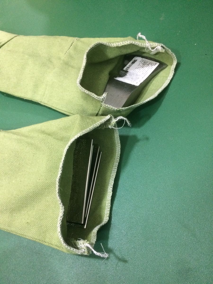 Тогда получается, подумав, что нужно попробовать доп сегмент и шпангоуты положить с одной стороны, а во второй внутренний карман класть что-то плоское, изн например или экран! Пробую - получается отлично: Продолжая тему укладки ранца и помятуя мой "супер" тубус для экрана, я искал в магазинах жесткую мешковину, дабы сшить чехол! Что ж, мешковину я к сожалению не нашел, "говорят что плохо искал" (с) Кино, однако нашел куда более удачный вариант, который позволяет "убить пару зайцев одним выстрелом"! В одном сетевом хозмаге я нашел варежки из жесткой мешковины по размеру идеально подходящие под экран и под топорик!!! Таким образом одной парой я закрываю целых три проблемы: