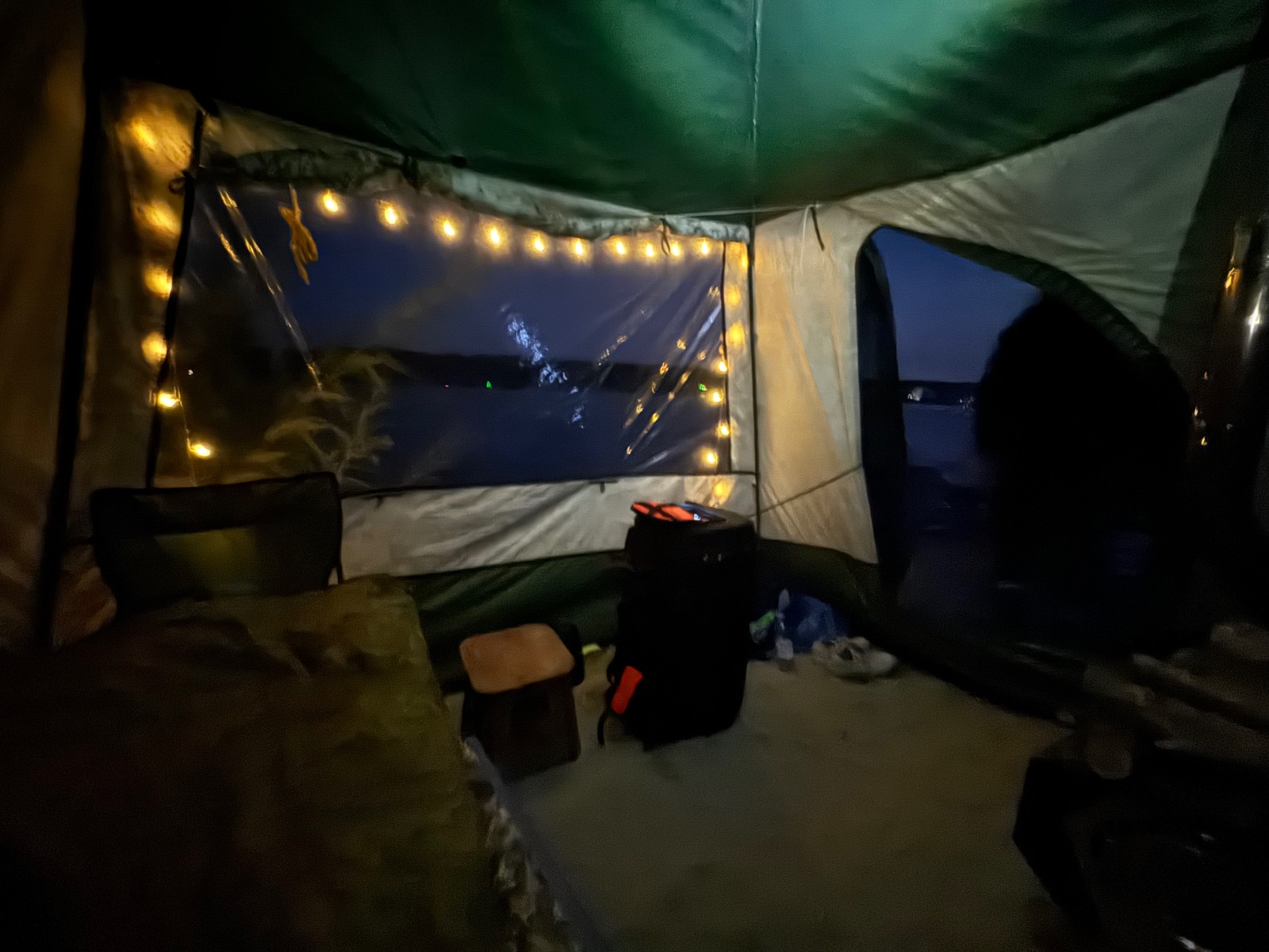Доброго вечерочка. :lol: Это пятница, 13 сент 2024 и ночевочка в МБ15А. В лодке дизельного фена с баком хватило на 6 ночевок (запас соляры не брал), и в ход пошла Мобиба. Вместо кровати два ПСН400 бок о бок и стульчик.