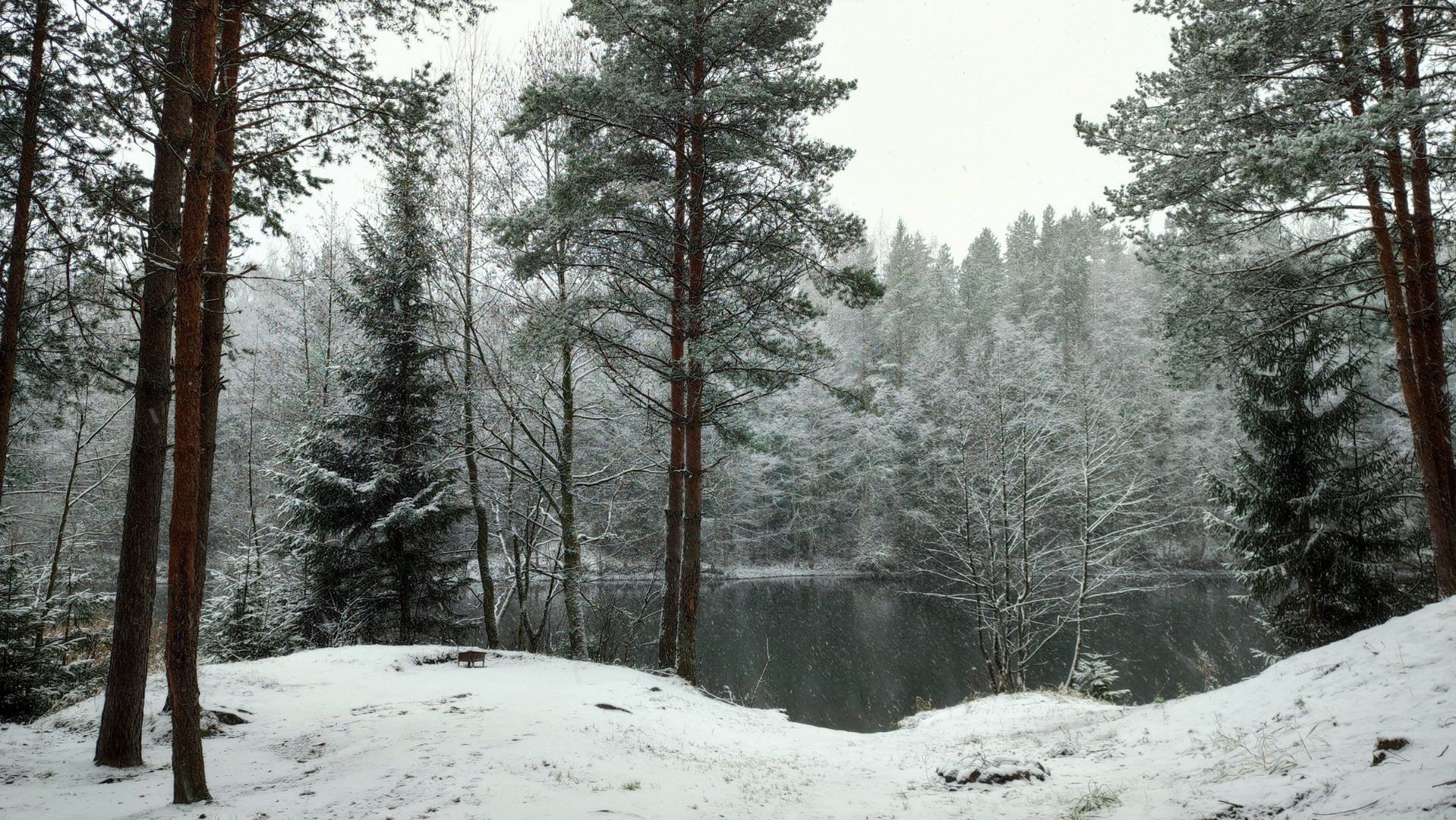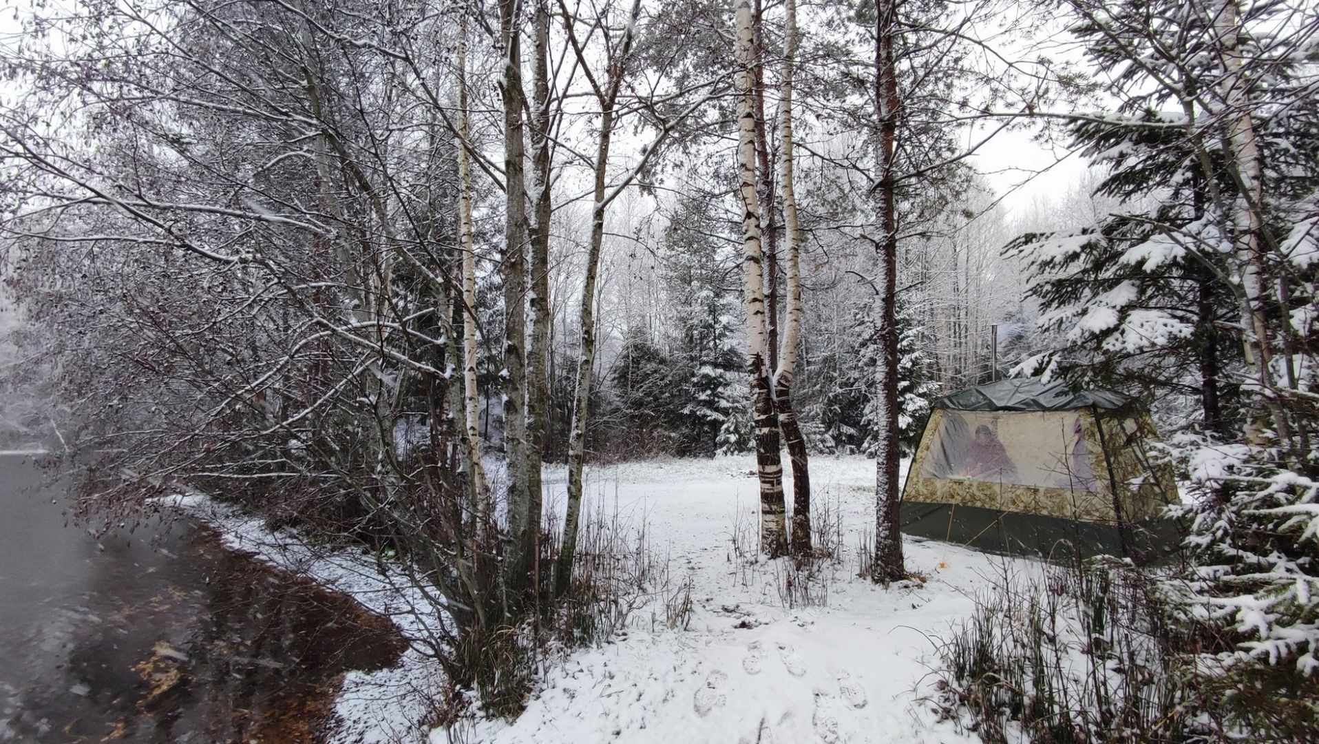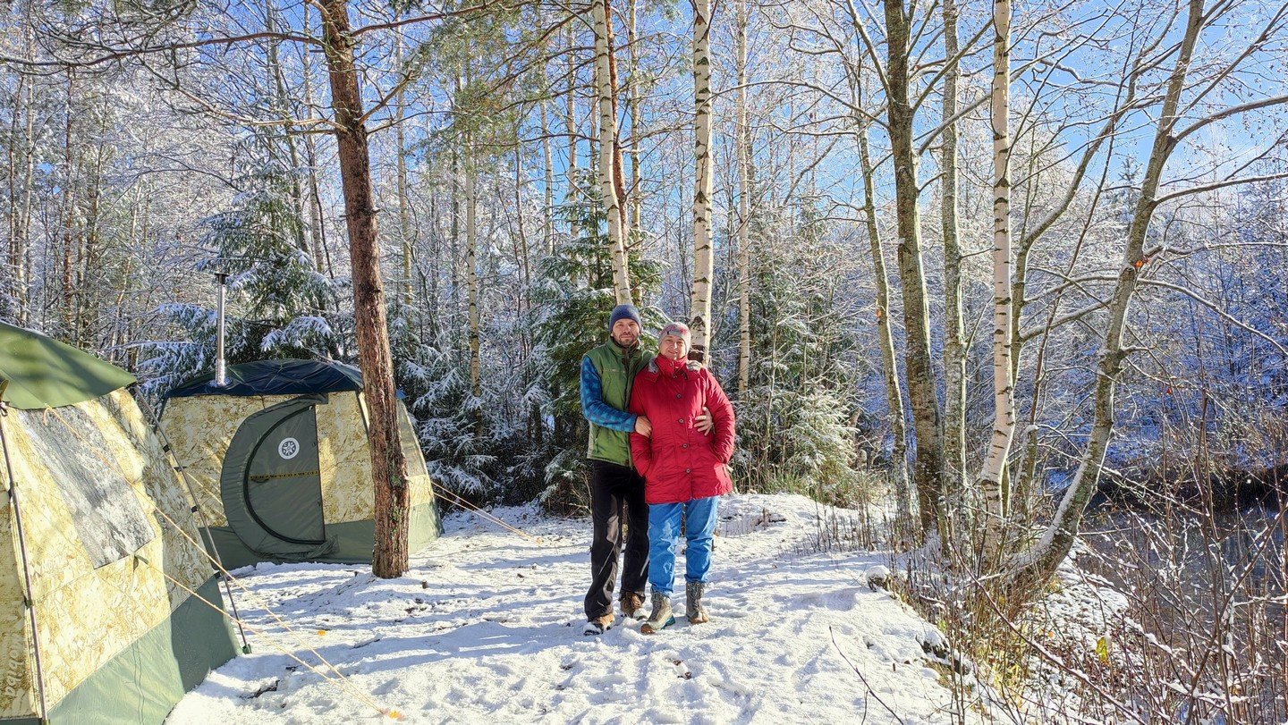 Выезжали мы выходные, с одной ночевкой. Попали на потрясающе красивую погоду. Первый снег постепенно начал погружать лес в зиму, заметая последние следы туристов, одноразовых шашлычников и глухих музыкантов.