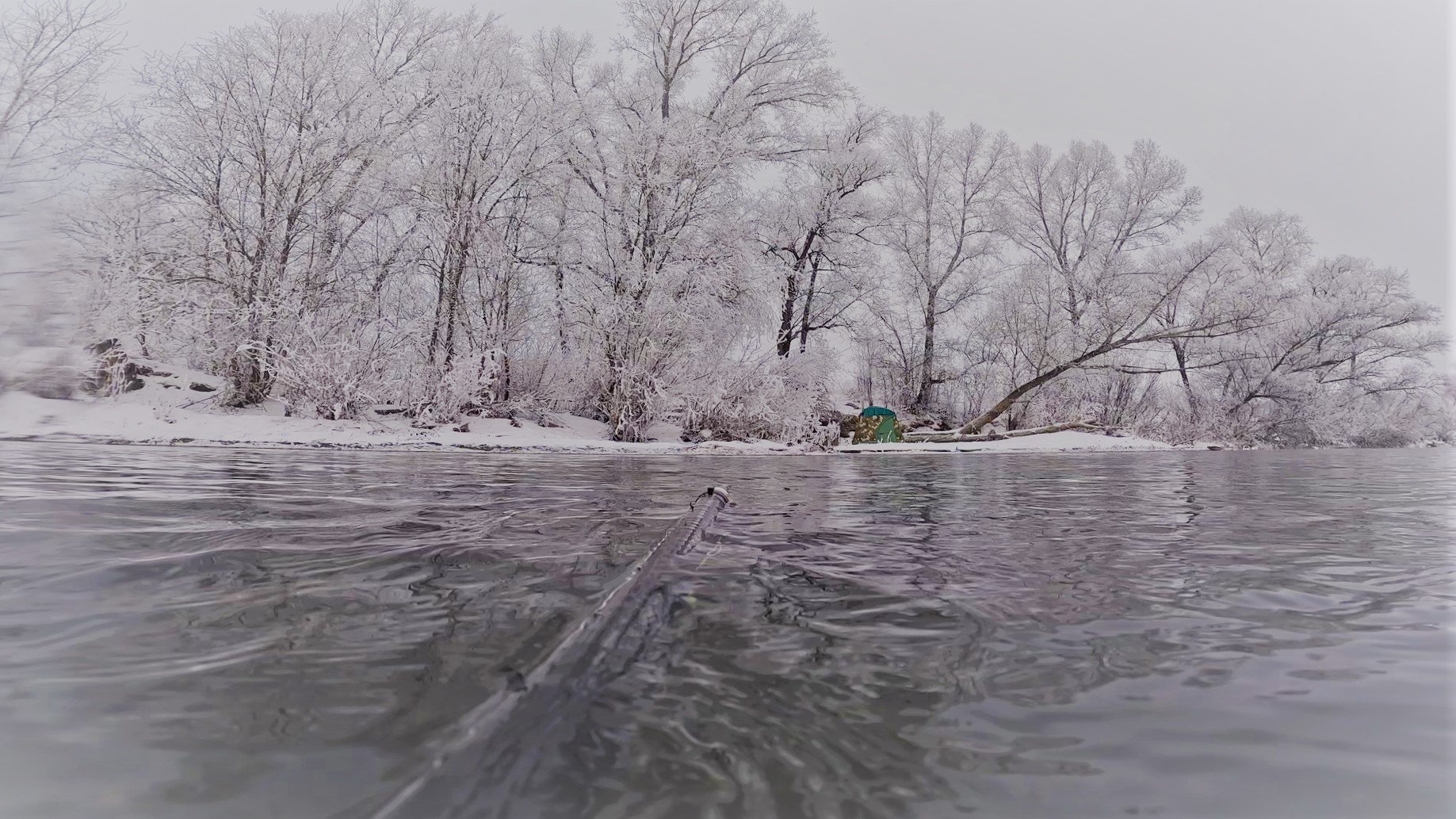 Лёгкий мороз, для комфортного переодевания в гидрокостюм, ставлю палатку Мобиба МБ10 с печью длительного горения Дюна3. Установка не занимает много времени, пару дровишек и печь даёт доброе тепло. Заслону на минимум- печь в режим тления. Беру снарягу и в воду. Прозрак космос, взял Тайменя 850. Под берегом немного льда, под которым крутятся мелкие рыбёшки. Хищника нет, вода спокойная плыву дальше. На течение появляются мелкие судачки, ищу клыкастого посерьёзней. Перехожу на другое место, вот тут то рыб поинтересней один за одним беру троих сударей. Назад в лагерь. Печь горит в палатке тепло.