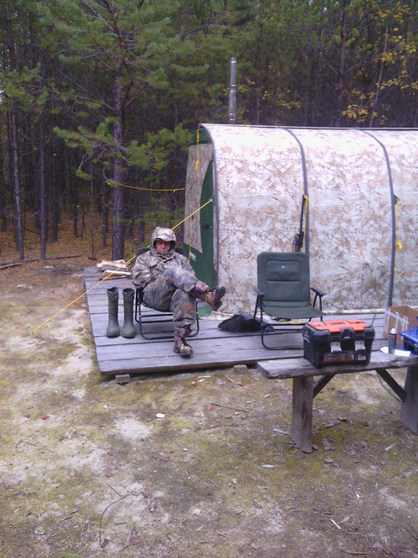 Насчет того, что "оружие всегда рядом". На первом фото (сорри за качество) ружье прислонено к палатке и частично видно из-за спинки пустого кресла.