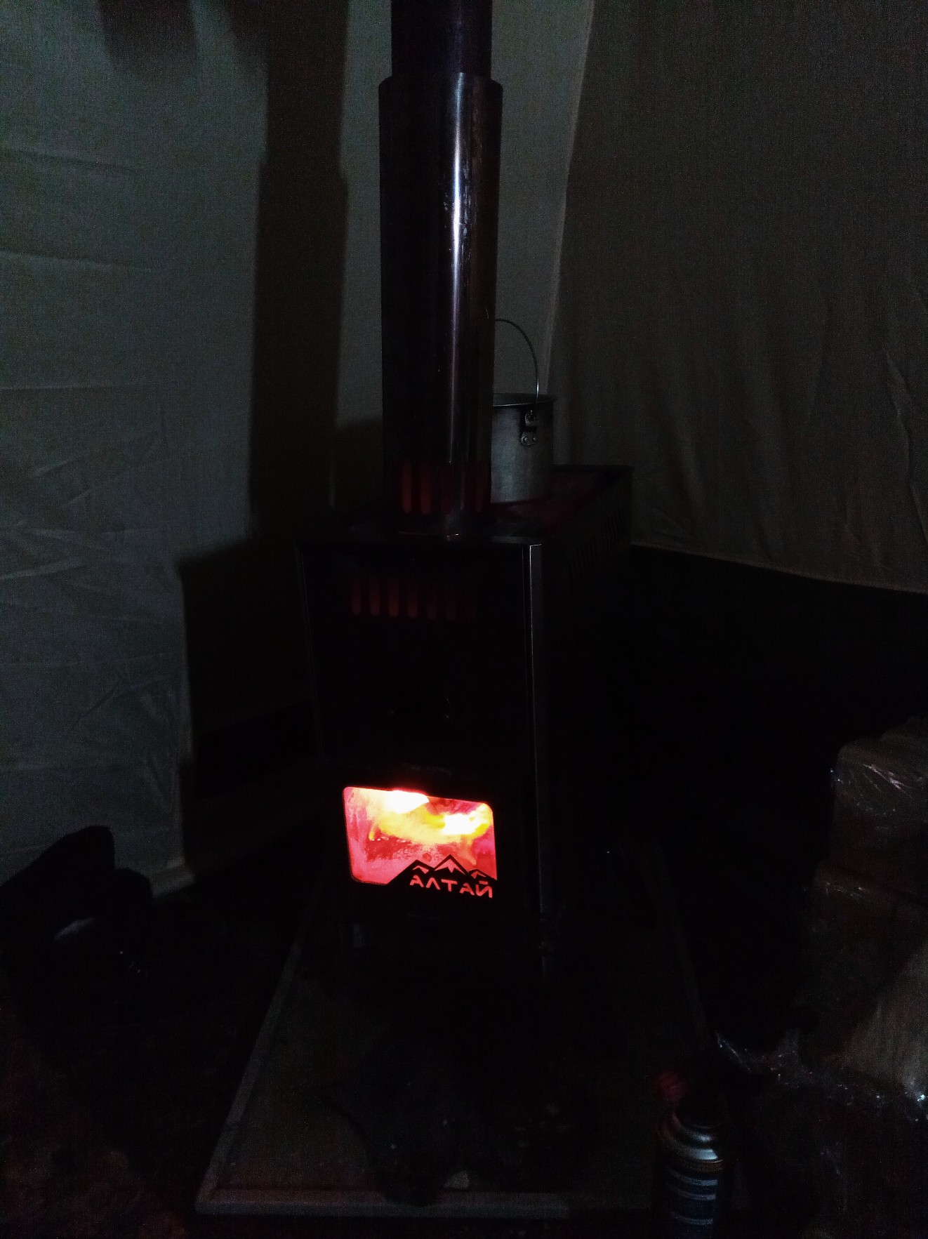 Вот самый оптимальный вариант на мой взгляд и печь где видно и красивое переливание огня и освещение халявное)).Попрошу супругу видео выложить в ветке «Наше опыт Р-63» уж очень красивым получилась игра огня, нам его вечерами и ночью за глаза хватает в качестве дежурного света, если основной свет не нужен. А так советую тем у кого палатка двойная в БАННОМ режиме размешать освещение между стенок направив свет во внутрь палатки там температура на порядок ниже, а света будет достаточно, так наверное можно продлить жизнь своему освещению (если честно даже не сталкивались с такой проблемой, раз купил и тьфу тьфу тьфу пока работает).Сергей Н. писал(а):Ночью какое-то дежурное освещение должно быть по - любому. Горячая печь, кипяток..., да и париться наощуп не очень наверное.