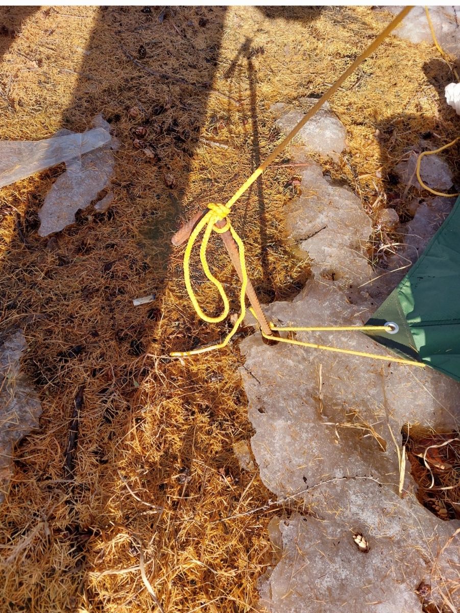 Растяжки (на МБ-10 использую только 4, на боковых стенках, угловые на случай шторма в резерве) длиной около 2-3 метров, завязаны на скользящий регулируемый узел, на петле курковые карабины на 6, цепляются за кольца колышков. растяжка от метра до полутора от края тента. Угловые около 4 метров, узел тот же. На люверсах закреплены карабины с винтовым запиранием, к которым привязаны стропы. К ним зацеплены курковые на 6. Монтаж колышков и растяжек в непромерзшую землю занимает секунд 20.Guran писал(а):Эх, жалко реально ни кто по размерам не может сориентировать да еще с возмодностью регулировки ползунками как на кемпинговых палатках , чтобы все аккуратно было без валяющихся под ногами соплей из веревок .Ладно буду высчитывать сам , всем спасибо .
