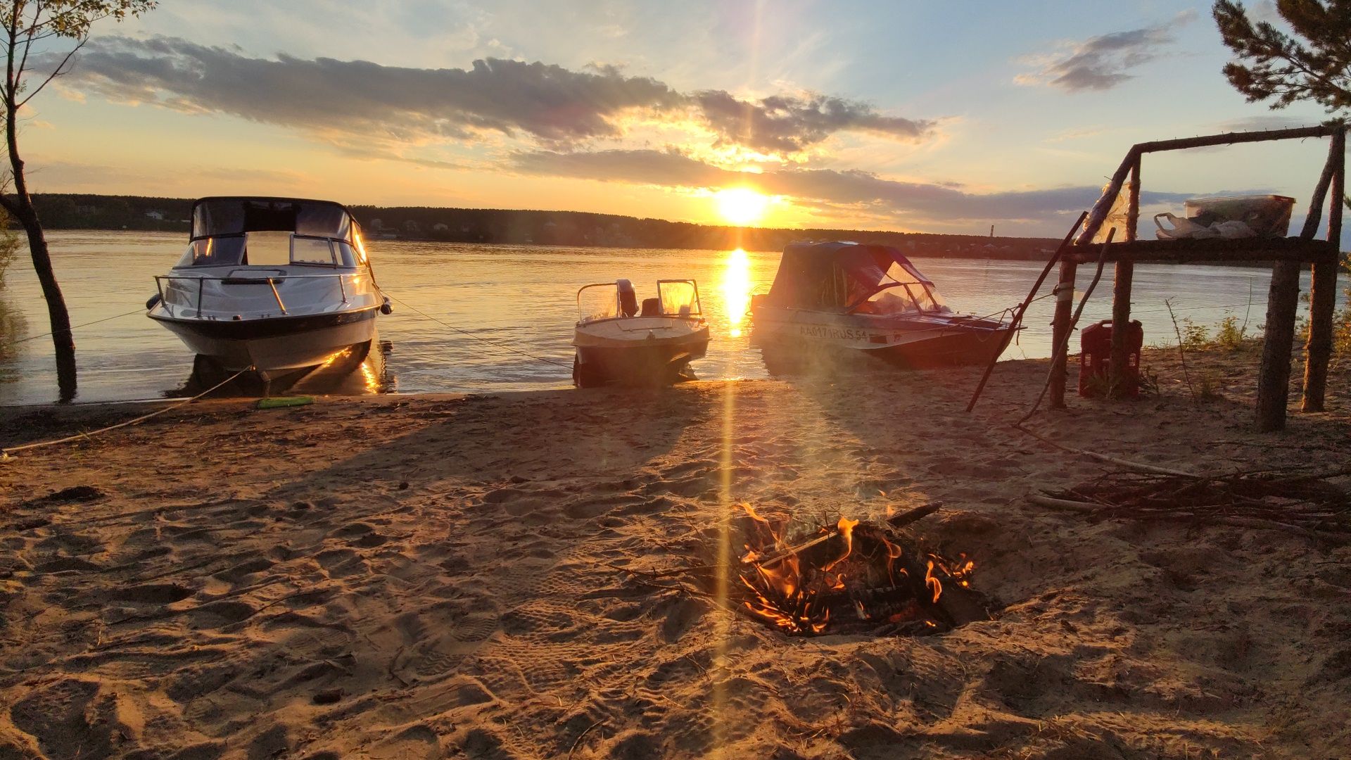 Т.к. очень большой уровень воды в Оби, 29 мая 2021 было не так-то много вариантов, где пристать к берегу. Нашли интересный участок, убрали чужой мусор, пожарили шашлыки, и вот такой классный закат предстал нашему вниманию: Разожгли костер, как же без него на отдыхе с природой? На следующий день к нам подтянулись товарищи-водномоторники. Уже кто-нибудь захотел высказать: "Вот баньки-то сейчас и не хватает!" - соглашусь, именно так. Что ж.. Когда-нибудь наверстаем. Кому еще не наскучило безмобибное повествование, прилагаю отчетный видосик.
