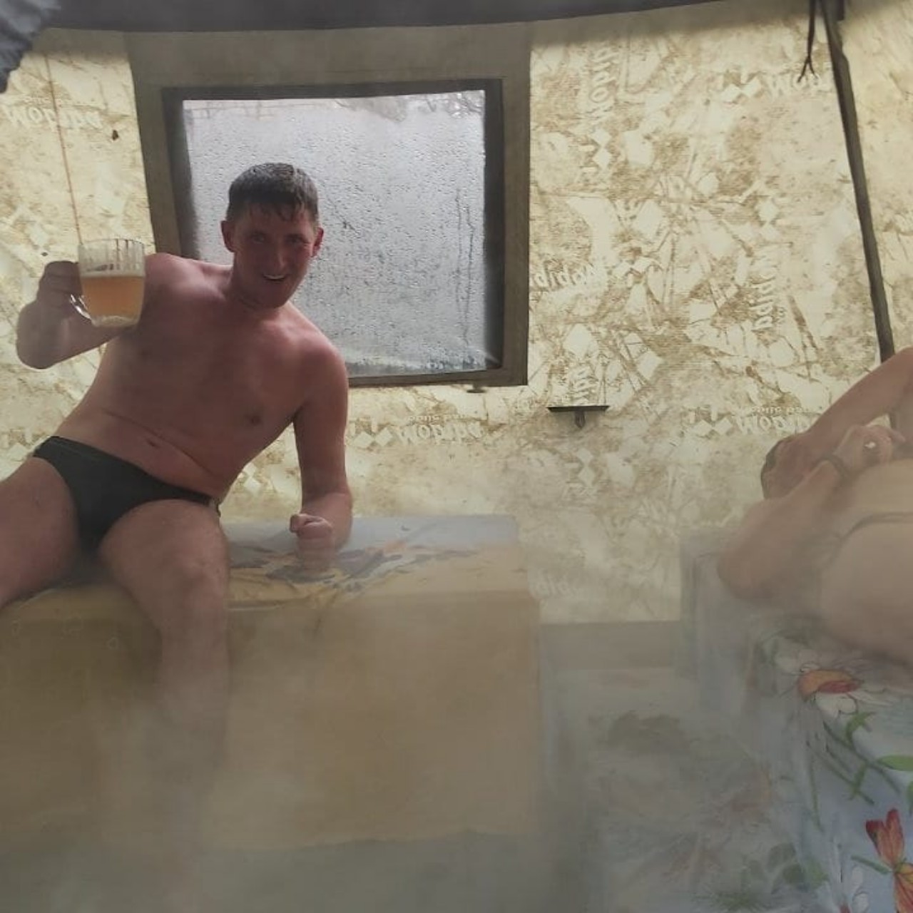 А в бане мы были у замечательного человека по имени Михаил))) Он поставил в качестве стационарной бани - мобильную МБ-15 от Мобибы, приобрёл куб в качестве купели и вуаля....