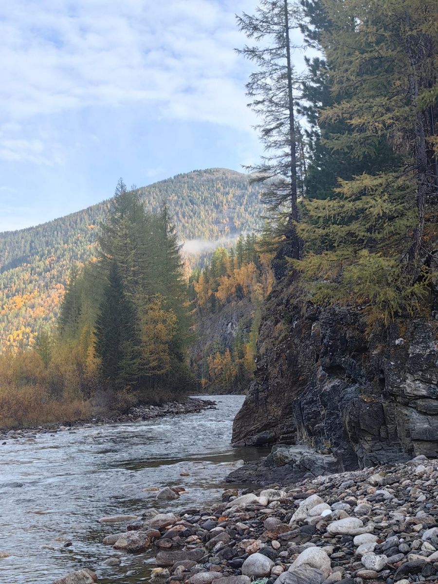 Красота неимоверная, от воздуха пьяный, а рыба берёт на любую снасть. Ленок и хариус нерестятся именно там в так называемых массанах - 2-3 метровые ямки после особо бурных участков. 200 кг пойманной за 10 дней рыбы не вывезти, поэтому парни оставляют половину в леднике на зимовье у проводника.