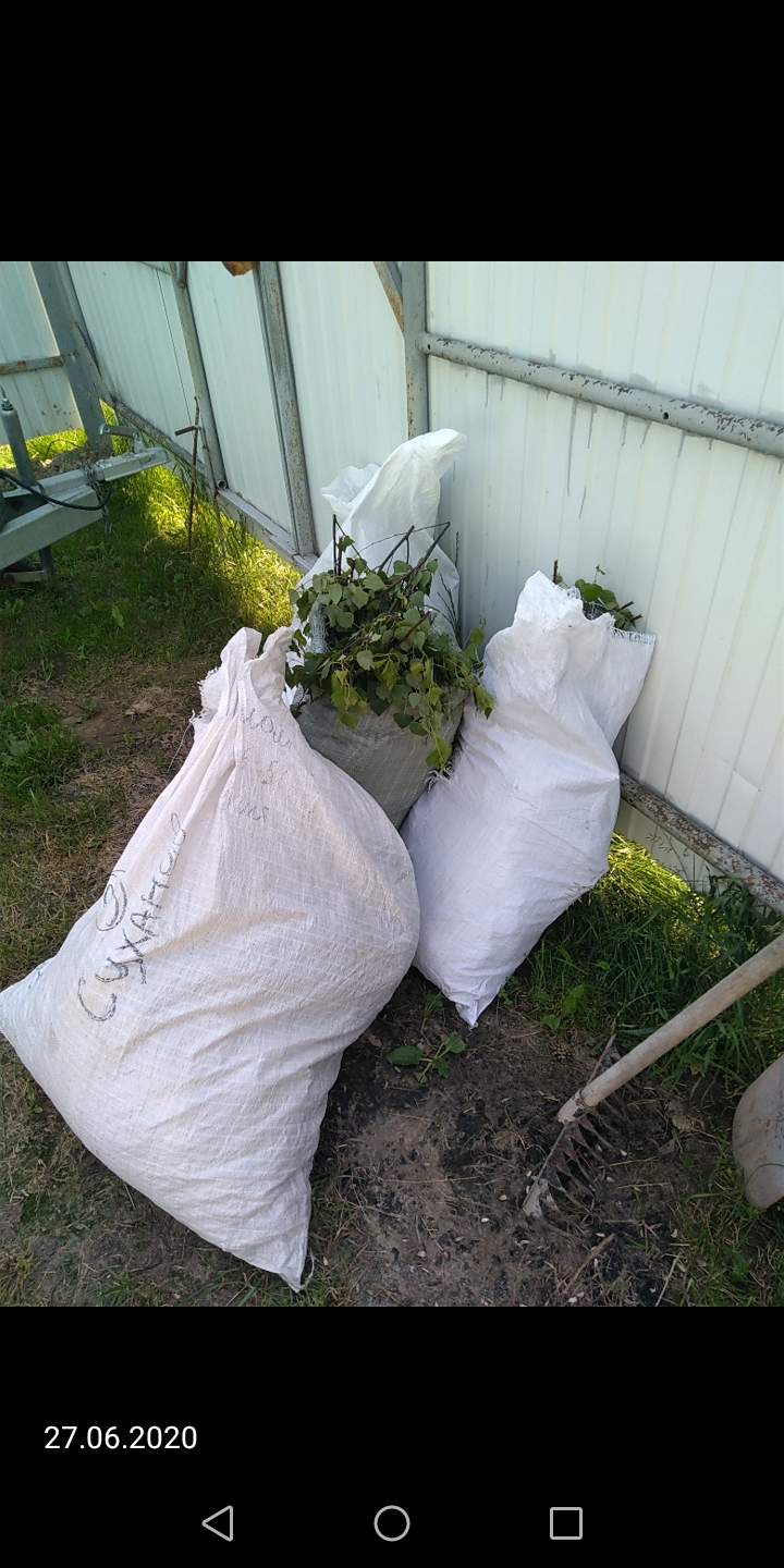 Вчера люди у себя на участке завалили берёзку, сегодня я забрал ветки и связал 17 веников. Ура, успел. До сегодняшнего дня вяжут веники.