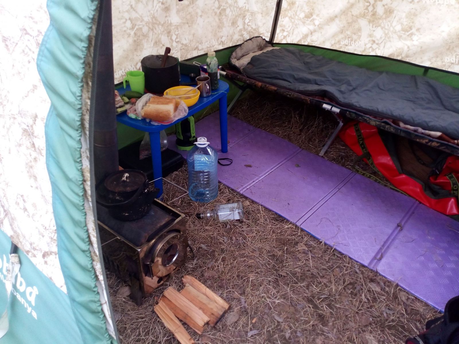 На ночь убрал КЦ и воткнул Дюночку. Т.е. палатка одна, а печки две. Королевской рыбы нет, да и с простой не очень. Но главное для меня на реке в последнее время не рыба, а качественная баня.