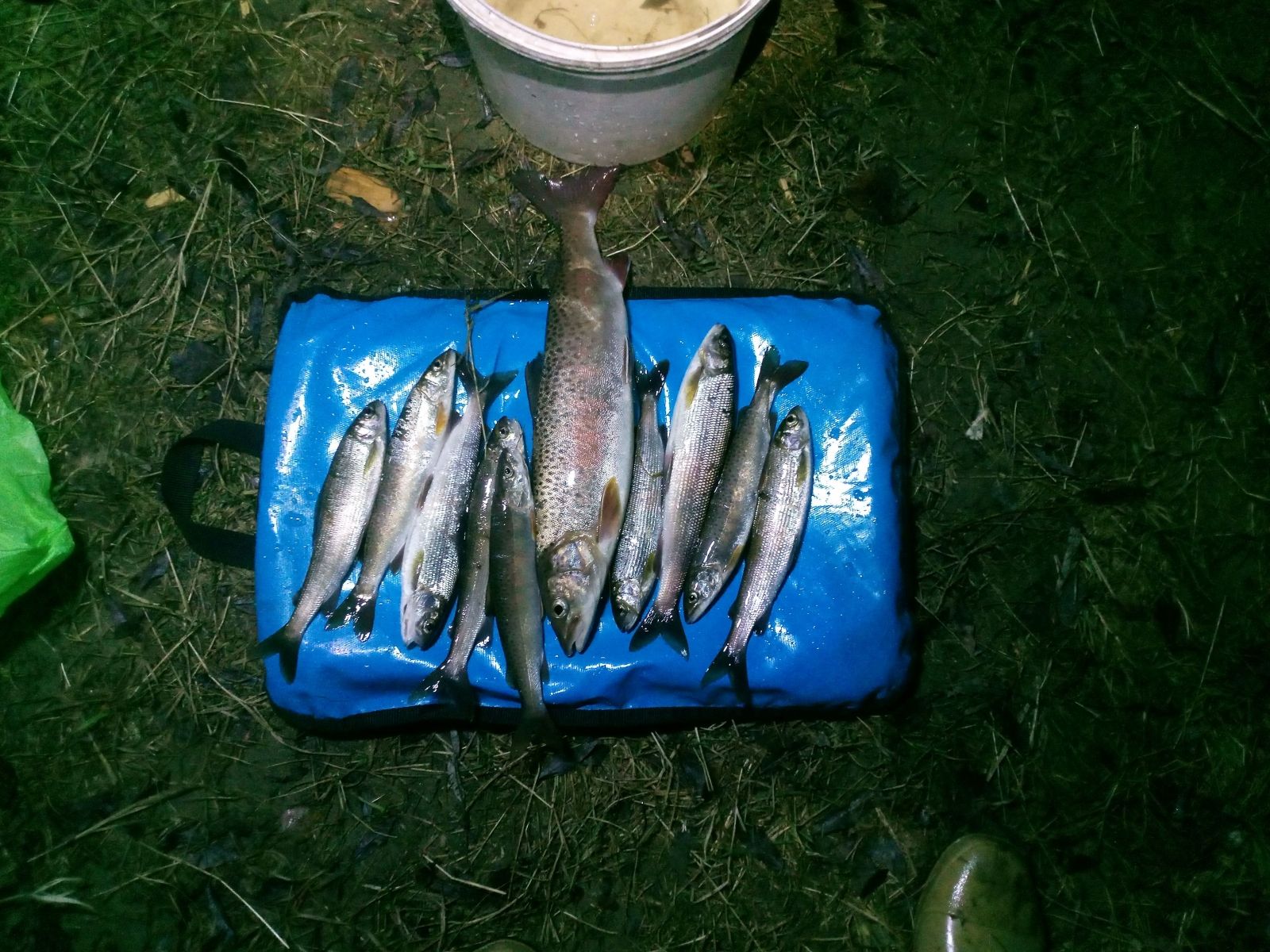 Отдохнули после баньки, затем Алексей перед темнотой закинул меня на авто на 3 км вверх по течению. Я прекрасно сплавился до лагеря на пакрафтике со снастью, а он рыбачил на месте стоянки. Результат для этого времени года неплохой.