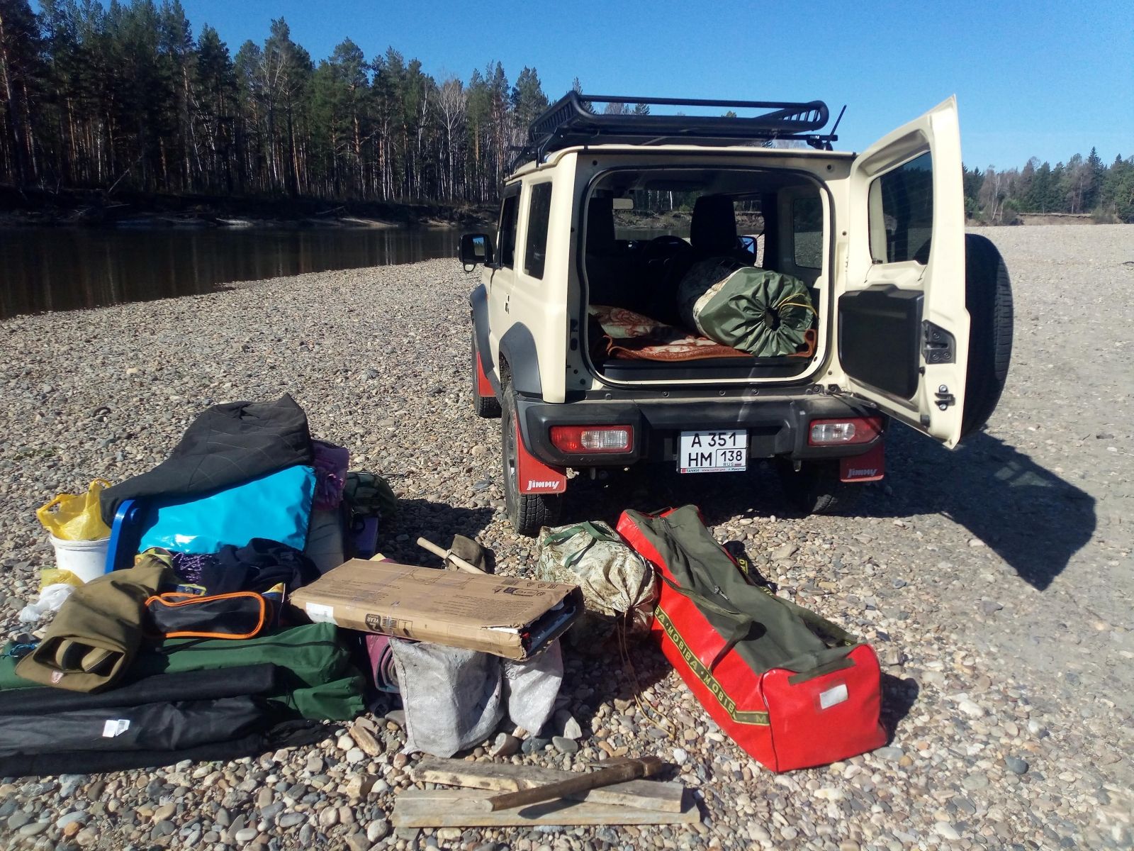 Всё это вошло в салон, кроме зонта. Зонт на крышу. МБ-15 входит поперёк сантиметр в сантиметр. КЦ-4 повдоль от задней двери до переднего сидения. И ещё огромное количество всего. Джимник создан для Мобибы (ну не Мобиба же для Джимника