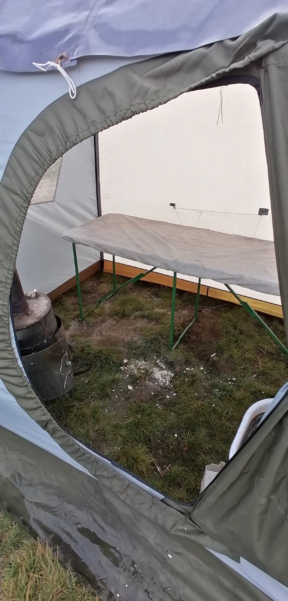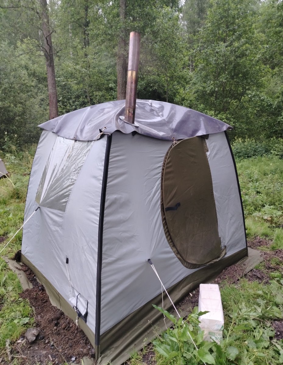 На улице конец июня, в ленобласти льют дожди, погода не летняя, решили с другом на рыбалку с ночёвкой поехать, обязательно с собой берём баню, грузим все в ниву и вперёд. Приехали на место разложились и часок на рыбалку, поймали немного щук на жарку и обратно в лагерь. Начал идти мелкий дождь, потом перестал, погода была сырая. Затопил печь в моей самодельный палатке и друг сразу оценил палатку с печью, что в ней можно вещи сушить. Сказал, что пожалел, о том что не купил к-6 когда я ему предлогал, денег пожалел. Ну теперь у меня сушится будет. Баня была замечательная, напарились, намылись и спать. Утром сборы и домой.