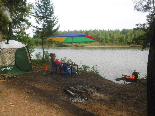 Каждые выходные выбираемся на реку с Мобибой. В этот раз мы были втроём, и мне пришлось взять ещё одну палатку. 104-ю брать было лениво, Согру вытаскивать на ночь - то же, поэтому своих на ночь положил в РБ200, а сам улёгся в обычной палатке. Два дня парились, купались и загорали.