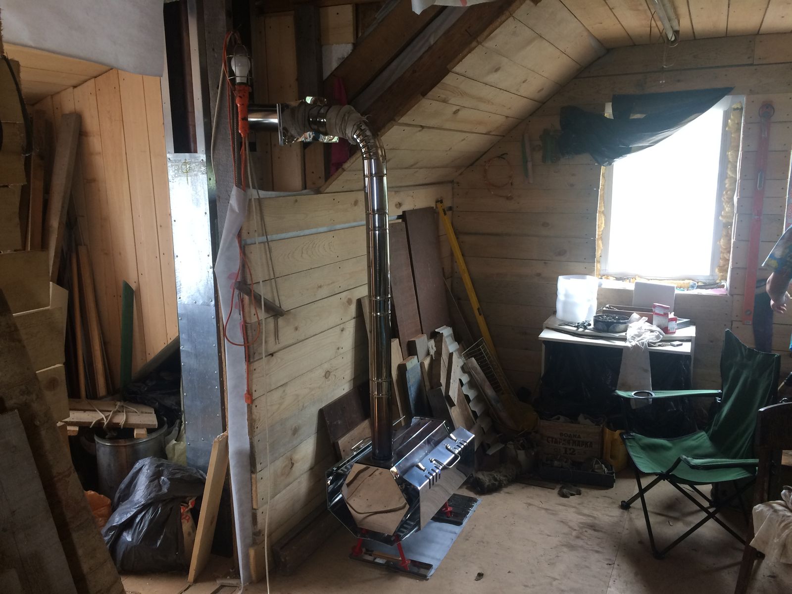 На прошедших выходных установил "Согру-3" на втором этаже дачи. Он практически готов - осталось поставить дверь, зашить и утеплить район разделки. Потом уже можно будет неспешно отделкой чистовой заниматься.