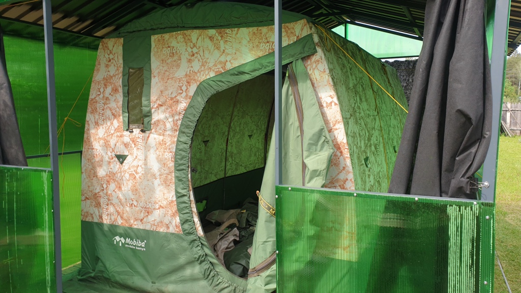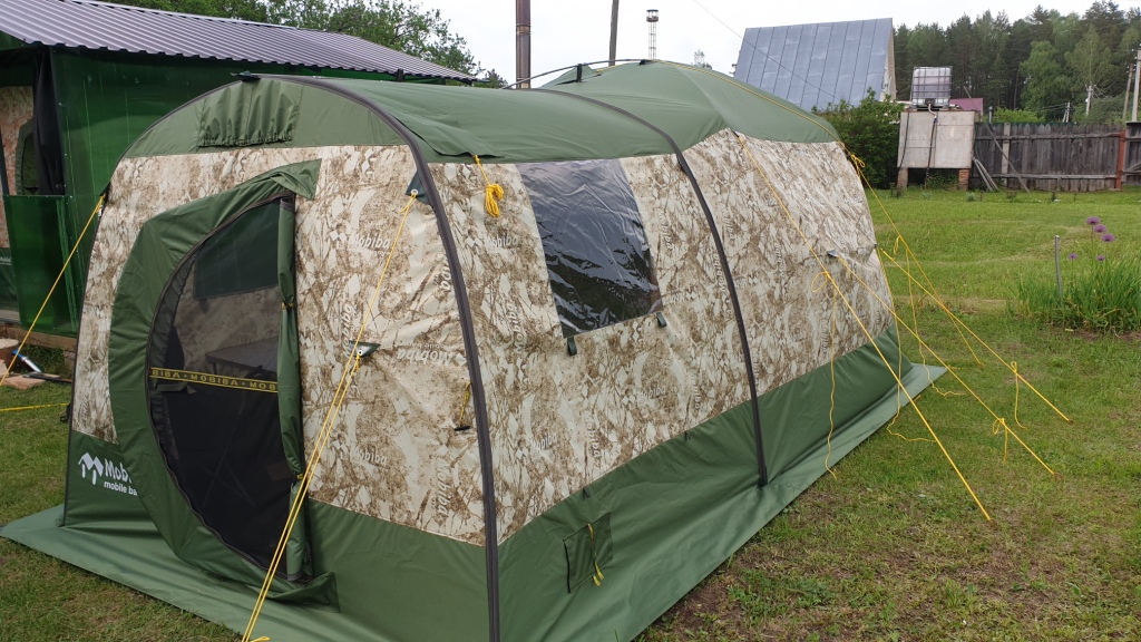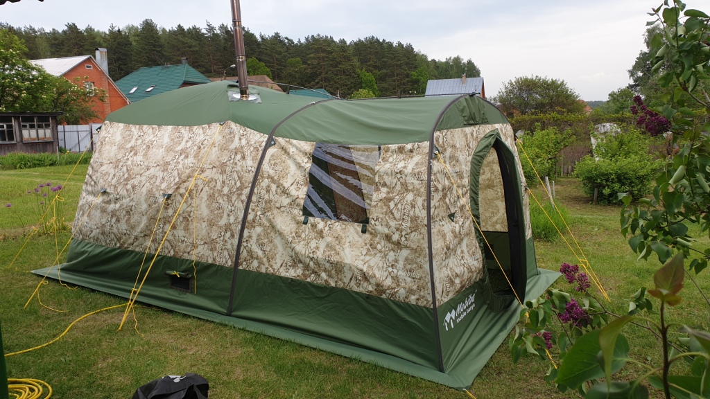 Отсутствие печи в тамбуре проявилось, когда к вечеру попрохладело, а затем пошел дождь. Стал обильно образовываться конденсат. Но это логично и предсказуемо. Сам тент имеет проклеенные швы.