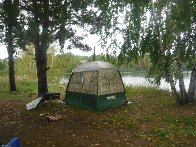 Конец августа, дождик, всего +8 на улице. Выехали с женой на озеро попариться.