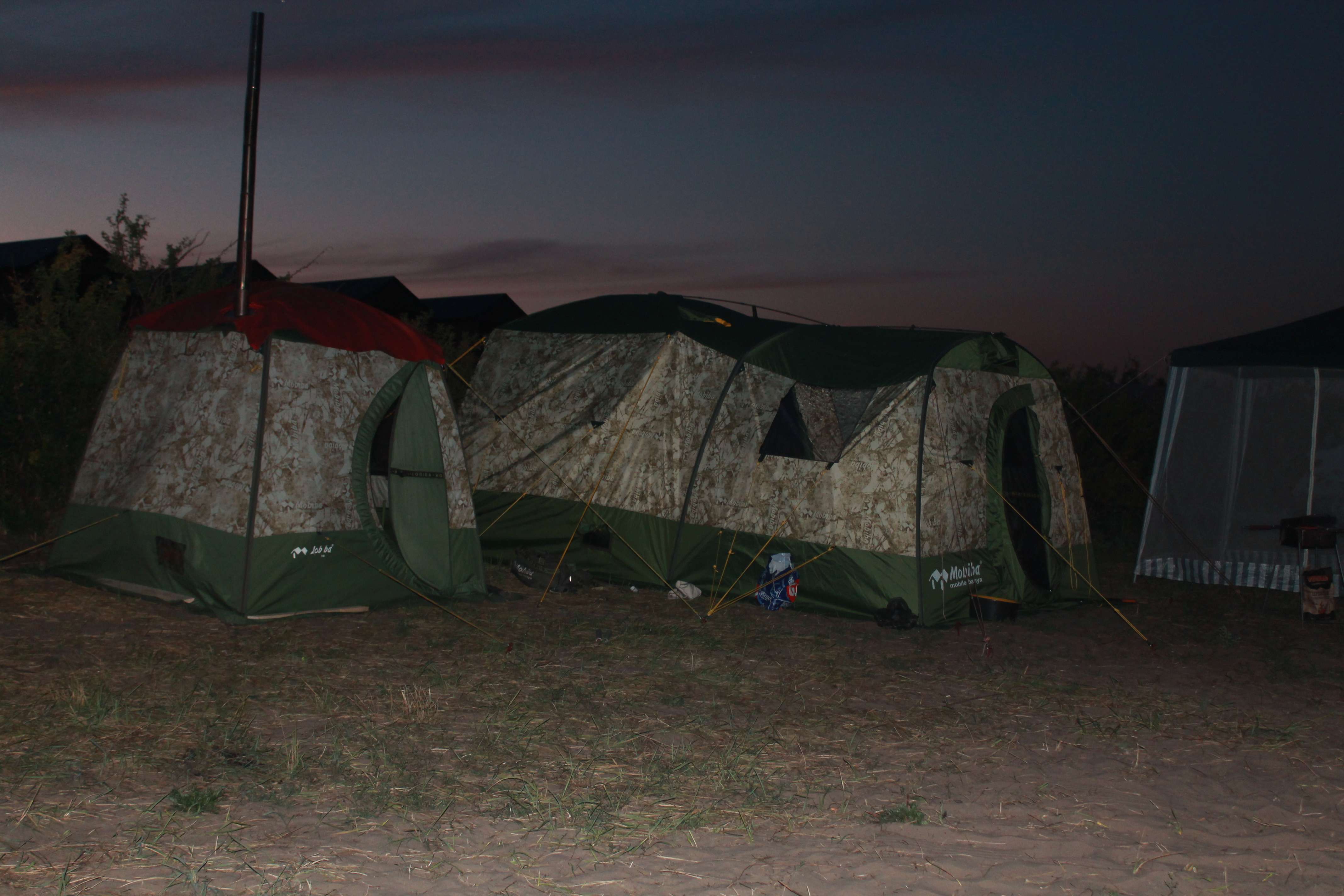 Так как останавливались всего на сутки, то особо лагерь и не разворачивали, обойдясь ПУ-15 и МБ-10 в качестве ночлежки. Кстати, ПУ-15 отлично сочетается с МБ-10, хоть и "торчит немного"