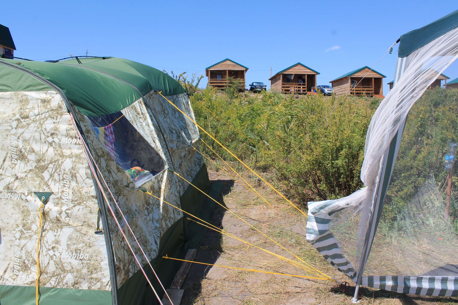 Однако, если сравнивать проживание с обычной кемпинговой палаткой, которое мы практиковали ранее - небо и земля. В той при такой жаре приходилось подскакивать уже в 8-9 утра, а тут даже без дополнительного тента было достаточно комфортно спать часов до 11, а если бы была возможность сориентировать палатку по ветру, то и вообще в любое время суток.