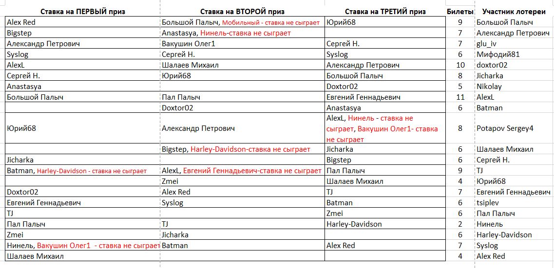 В ставке на Третий Приз вакантны участники: Александр Петрович, Мифодий, Миша Шалаев, Harley-Davidson, Alex Red.