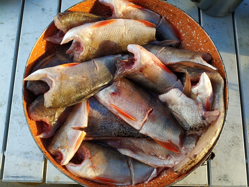 В первую очередь нужно переработать вчерашний улов. Ну что по этому поводу можно сказать? «Чистка рыбы – дело всенародное!»))) Выпотрошенная и очищенная рыба сортируется по запланированным блюдам: что-то на рыбный холодец (это с вечера он уха, а утром – самый натуральный холодец), что-то - на котлеты, что-то - на рагу со сметаной и овощами, что-то – на засолку… Потом всем кагалом приступаем к готовке. Блюд в меню сегодня много, работы хватит всем!))) Сегодня у нас, можно сказать, прощальный ужин. Завтра с утра Ваня с Серегой уходят домой, а мы неспешно заканчиваем маршрут, идем вверх по Васюгану, докуда хватит топлива (без фанатизма!), снимаем все, что запланировано… В общем, оттягиваем свое возвращение в цивилизацию еще дня на три-четыре, благо спешить нам особо-то и некуда.