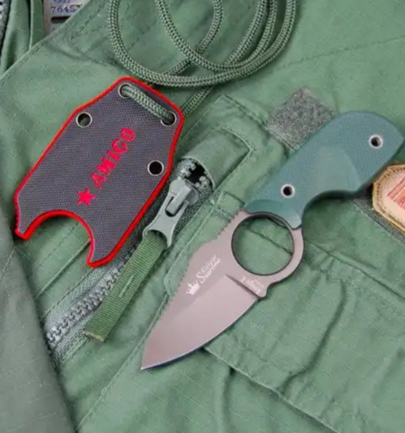 1. Нож для грязных/грубых работ - норвежский Неlle, модель Viking. Трёхслойная пакетная сталь - неубиваемая штука, чудовищно толстый и прочный клинок. Можно хреначить топором по обуху, всячески издеваться - всё стерпит. Валяется в машине. Используется где не жалко. 2. Какой-то мультитул от Leatherman. Раньше был дорогущий Charge Tti, благополучно потерян, сейчас куплен какой-то попроще, даже не помню точно модель, примерно как На фото. Тоже лежит в машине как часть автомобильного инструмента. 3. Охотничий складник от Victorinox. Основной нож. Висит на поясе. Открывается одной рукой. Удобно. 4. Кизляровский шейник Amigo. Мой любимец. Висит на шее. 95 % всего Что требуется от ножа выполняется им, несмотря на микроразмеры. Указательный палец продевается в кольцо. Из ножен выдёргивпется одним движением, сам не вываливается никогда. Особенно удобен раз рыбалке.