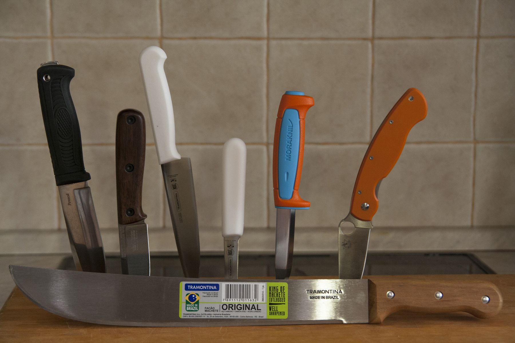 Каждый выезд на природу, как ни крути приходится резать продукты, чистить овощи, готовить еду. Обычные кухонники справятся с этим куда проще. Эти трамонтинки чем нравятся: пластиковая литая, не скользкая рукоятка и очень бюджетная цена, при хорошем качестве.