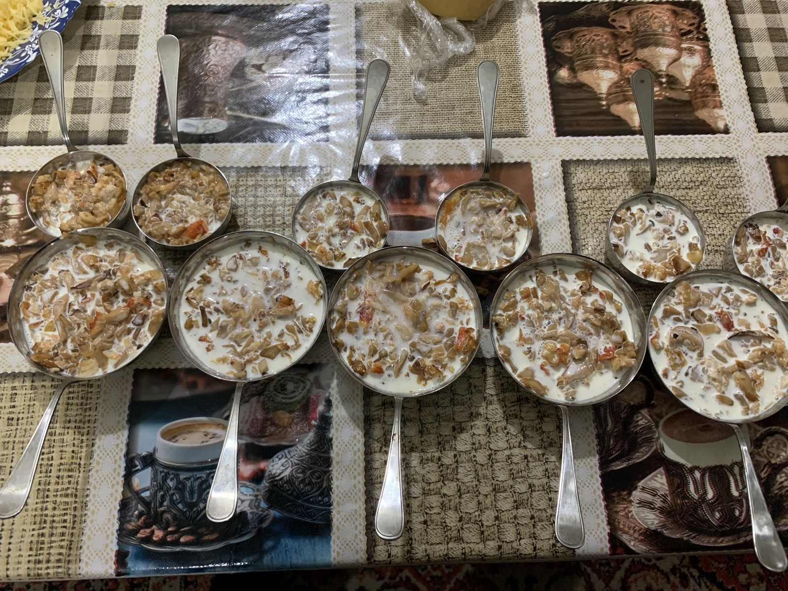 8.Раскладываем смесь (краб, шампиньоны и лук) по жульенницам