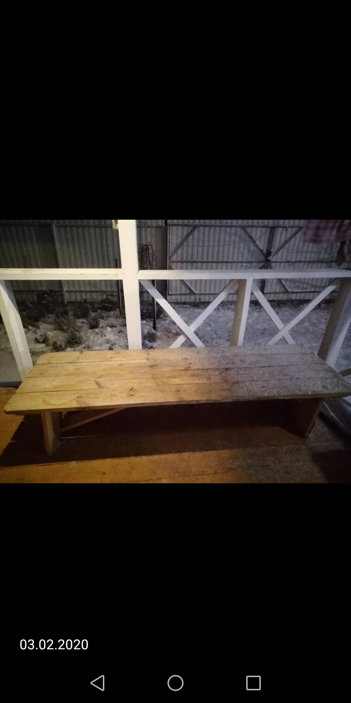 Правда доска была сушёная несколько лет и без явных карманов со смолой. Прошлую зиму использовал как лавочку в Инипи. Просто застилал, для перестраховки, полотенцем. Смолы не видел. А сейчас стоит на веранде. Я на эту зиму сколотил себе полок с лавкой.
