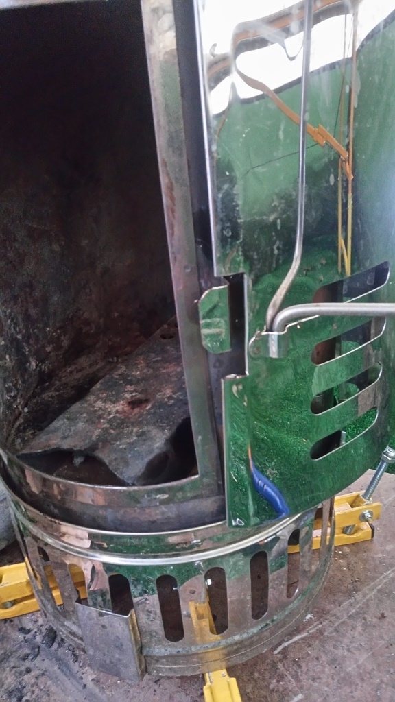 И еще. Кто эксплуатирует КЦ-2 с камнями, тот столкнулся с такой вещью как малый угол открытия топочной дверцы. Камни оттягивают экран назад и он своими передними кромками немного мешает дверце.