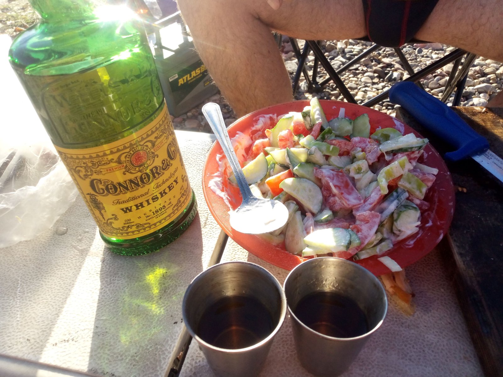 А нас достал встречный ветер. Течение в этом полноводном месте слабое, и гружёный Братан стоит на месте, хотя ранее местами мы летели, как на мотоцикле. Чтобы вскипятить чай на газу, приходится городить городьбу из подручных средств.