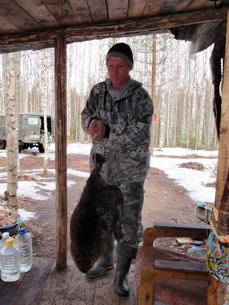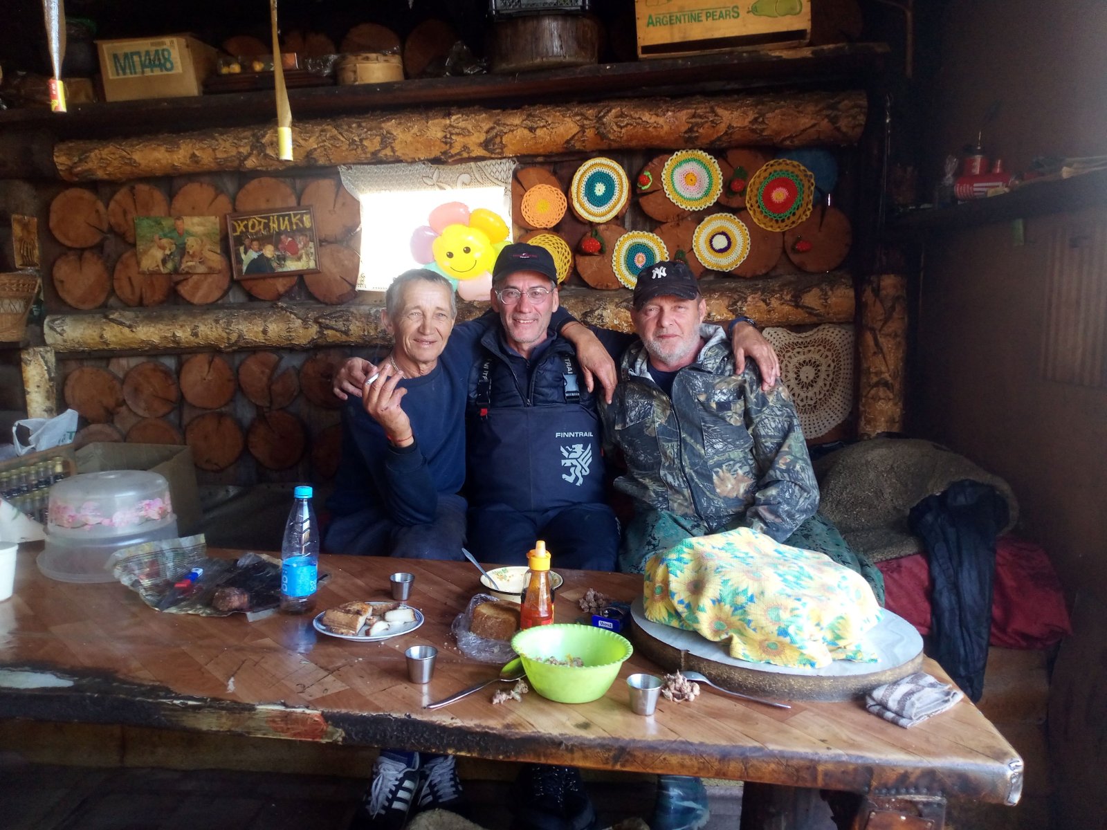 К обеду подходим к жилью местного охотника. Валерий много лет назад построил себе дом на высоком незатопляемом берегу и живёт здесь с апреля по ноябрь. Промышляет барсуками. Он встречает нас хлебом-солью, ну и мы не пустые.