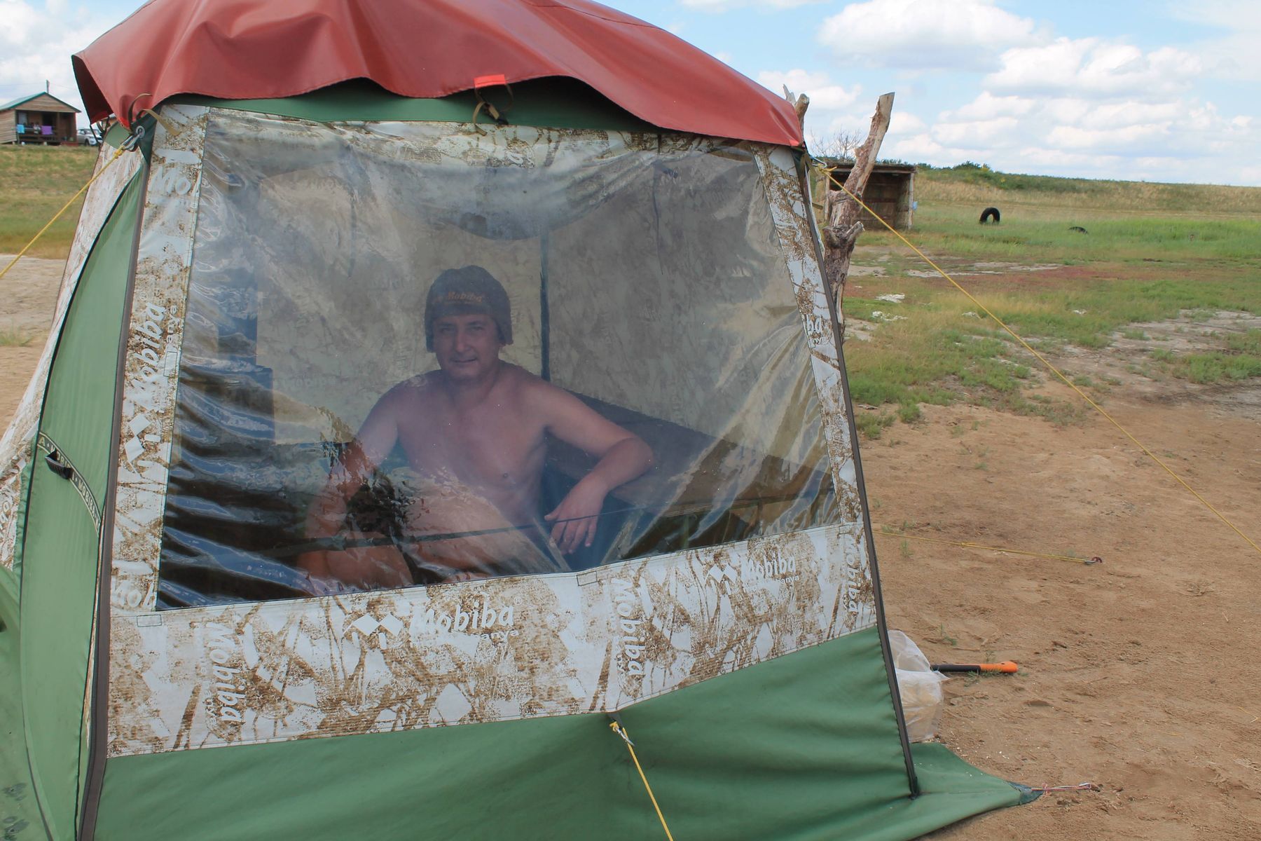 Но русские не сдаются! Дождавшись просвета в пару часов, срочно ставим МБ-10 на срезе воды озера Горькое. И пофигу, что совсем скоро гроза смоет все следы на песке, ветер впечатает дверь бани, растянутой на все 8 точек, в задницу находящегося внутри(да я там был, чего уж… думал, снесет нахрен ) так и стоял, спиной стенку десятки подпирая, пока шквал не прошел))) Но было забавно))