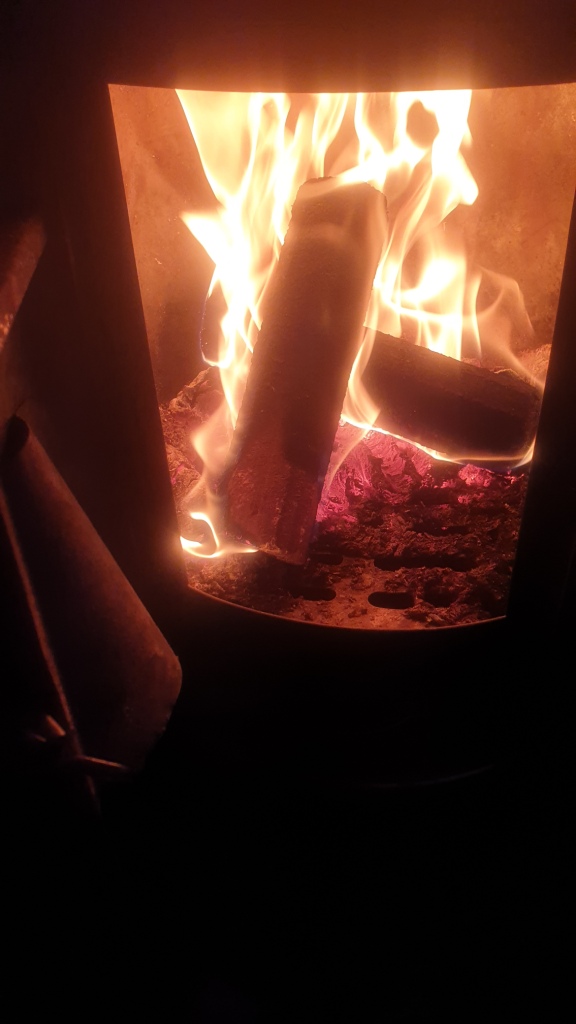 Да как шепчет! У нее и так дури немеряно, а тент сконцентрировал ее возможности. Частенько я парился тупо сидя на полу) Методом проб и размышлений сидя на полу) я пришел к выводу, что мне вот прям нормально, когда в топке Паробомбы всего пара пиникеев. Если добавить еще один, то появляется время попить пивка или чая в предбаннике, пока температура не спадет настолько, что можно хотя бы залезть на нижний полок. Причем температура за бортом вообще пофиг. От слова совсем) Вот так выглядела топка при рабочем, терпимом режиме.