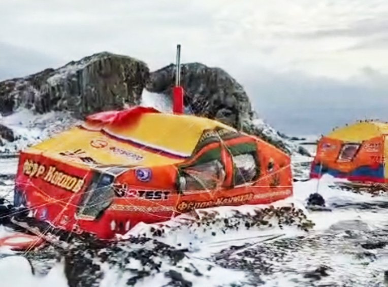 У меня есть видео от Федора Конюхова, там снято, как это все выглядело во время урагана. Как тент хлопал. Там реально человек со слабыми нервами обкакается. Ощущение, что тебя сейчас ветром раздавит или унесет куда-нибудь. Но Штаб Федора Конюхова не публикует это видео. Не знаю почему. Поэтому я тоже не публикую. Сам Федор Конюхов не знал, что у него эти подпорки есть в комплекте. Ему не сказали или что. Он стал подпорки внутри палатки из досок городить. В итоге форма палатки была восстановлена. Трубки и тент выдержали.