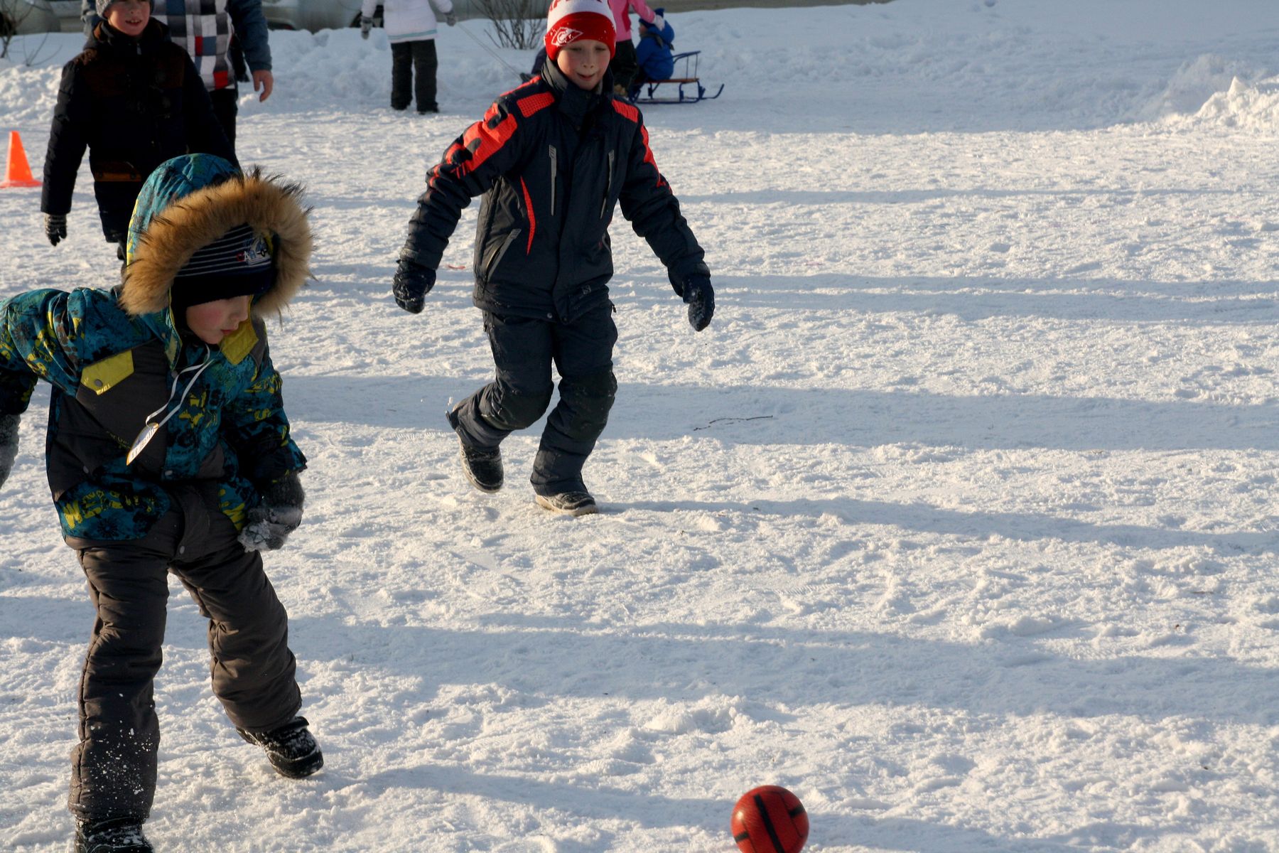 Потом королевский пикник с горячей едой. И на конец для самых стойких - Матч года! Футбол. Дети против - Пап. Малышня, конечно техничнее, но папы взяли авторитетом.