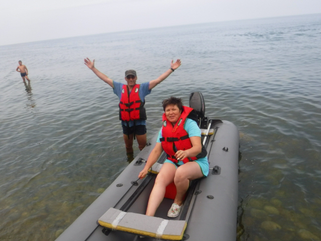 К нам подъехали ещё двое друзей. Накатались на лодочке, даже в 3 км от берега умудрились попасть в грозу. Волна на Байкале поднимается мгновенно. Причём не та длинная ленивая волна, на которой можно ходить до метра, а именно короткая штормовая, опасная для небольших лодок. Но даже на короткой волне Братан идёт вполне сносно примерно до 70 см. Последующие дни баню делали в пятнашке. Просто перенесли Мегу в неё, а Согру поставили в Р-436. Дамы соревновались в кулинарии. Жена друга Оксана мало того, что любит баню и парится круче всех мужиков, ещё и делает фирмовые оладьи. Шикардос работал все дни и также приготовил нам массу блюд.