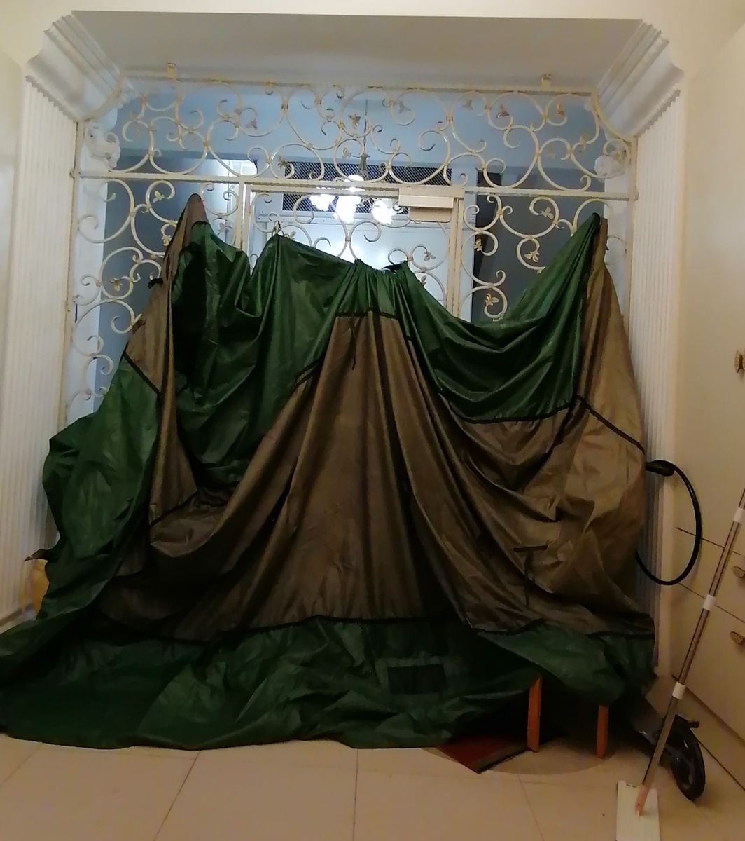 Я каждый раз поражаюсь вашим жёнам, насколько они вас понимают! Еслиб я дома развесил палатку на кухни, то ближайшую неделю жил бы в в этой палатке! Сам в шоке от таких фото.