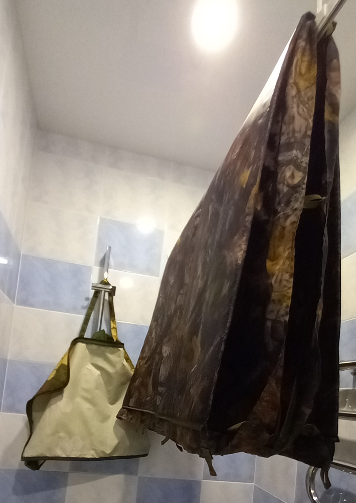 Палатка сохнет в кладовке в подъезде,пол тёплый лёгкий, можно и дома в ванной на дуге для занавески. Мобильную баню любим все.