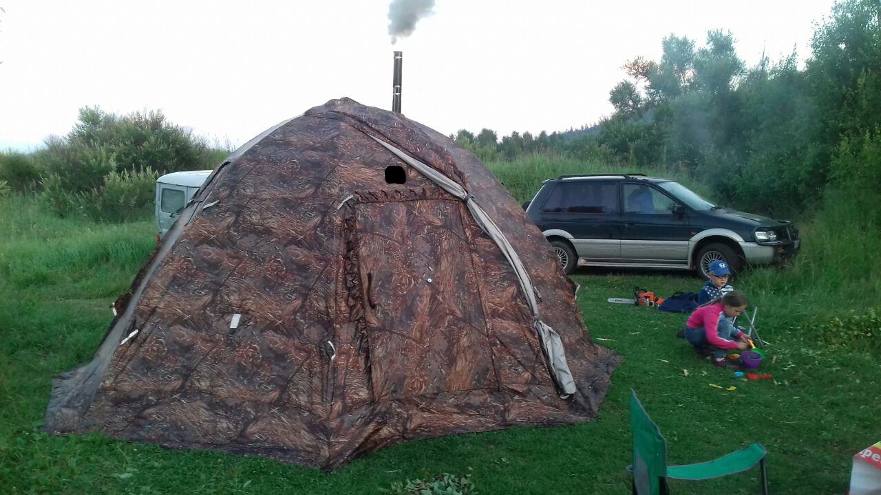 А вот на дружественные семейные выезды ту же палатку можем использовать с паробомбой как баню. Но чувствую что паробомба такой объём не прокачает ((