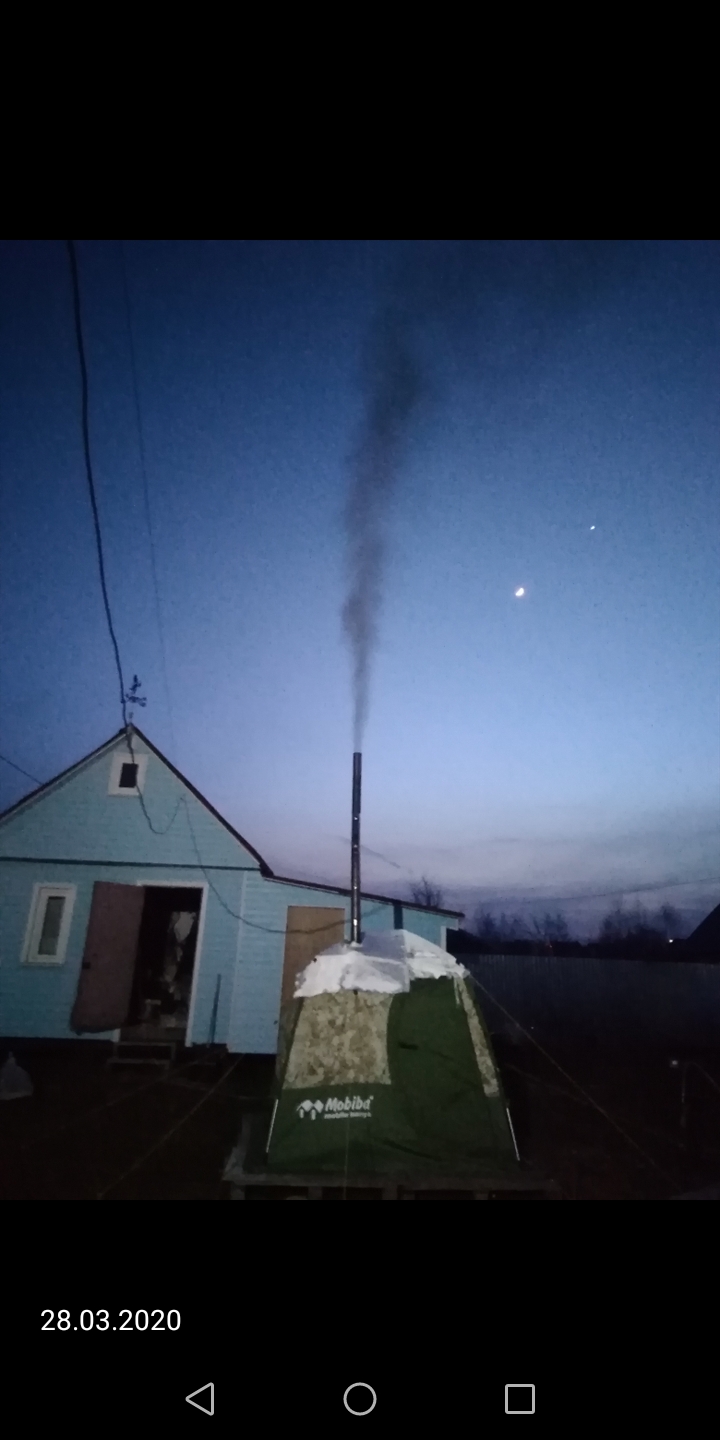 Вот только дрова сосновые ужасно искрят. Уже несколько прожегов на палатке. А что делать, других дров нет. А ИЗН купить... Деньги то есть купить, а вот получить его пока будет проблема. Надеюсь, в скором времени все нормализуется, и все противоэпидемические меры будут сняты. А пока попробую ИЗН от 104-ки.