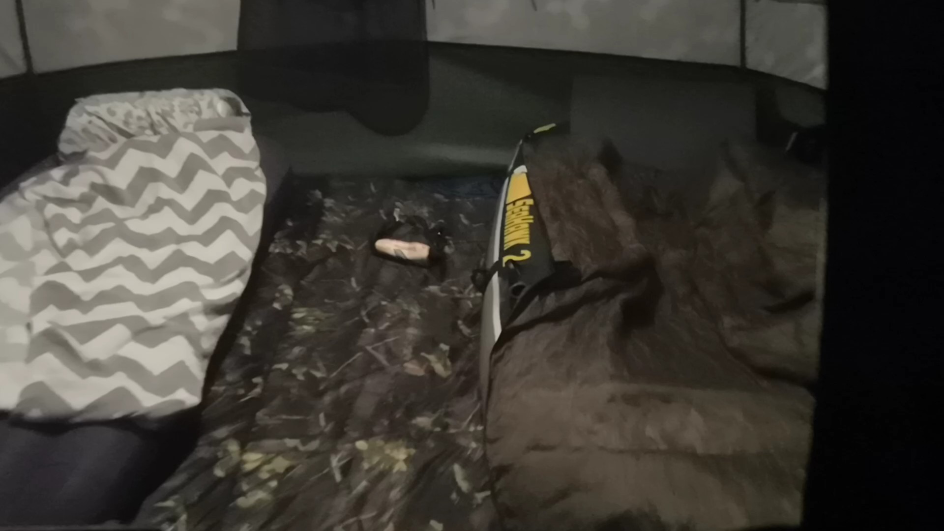 В ней же и ночевали. На видео это всё увидите. Выносил полки, стелил на пол тент, сверху на тент стелил ПУ от РБ-200. Заносил 2 надувных матраса и печь Дюна-3. Вот так неспешно, за 10-15 минут баня превращалась в дачу.