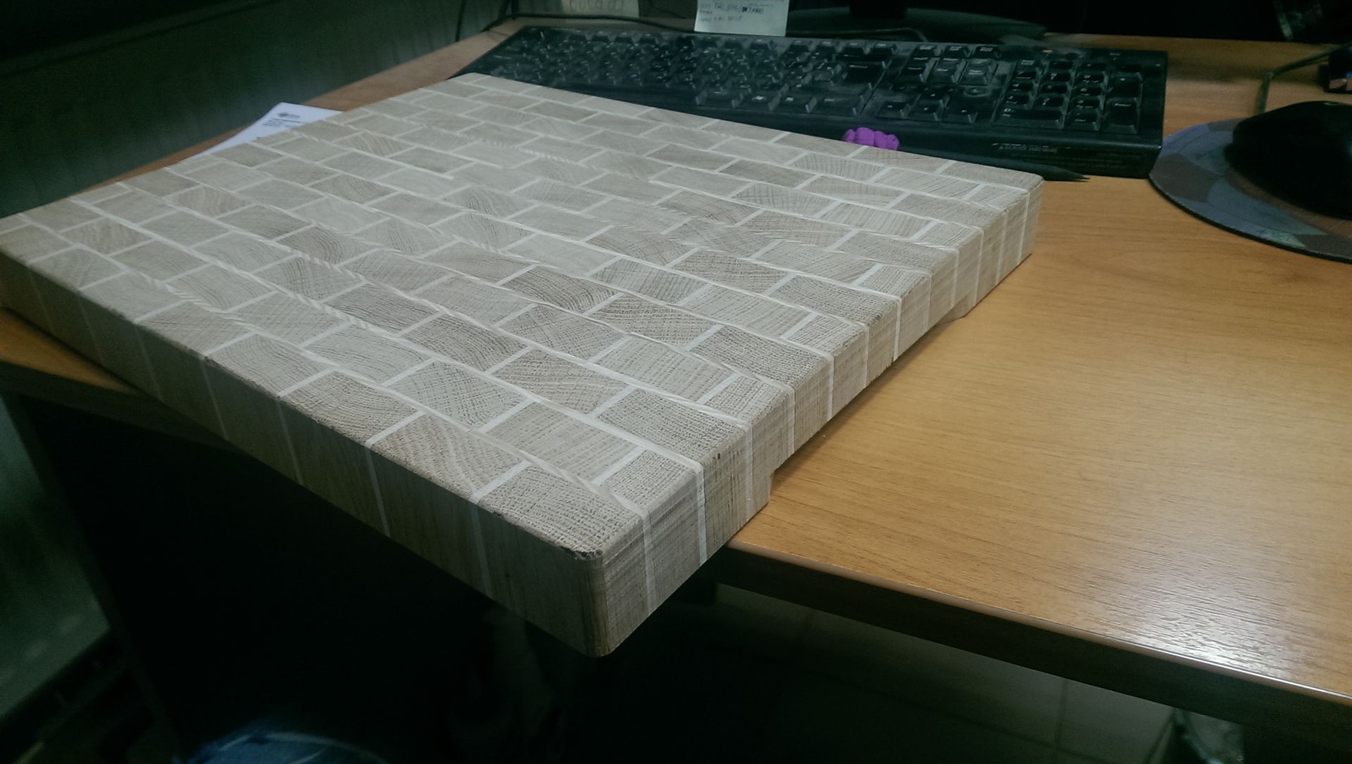 Вот почти доделал, доска разделочная торцевая, 36х305х375мм, мясо для шикардоса резать(не рубить) самое оно, можно добавить к основному подарку!?