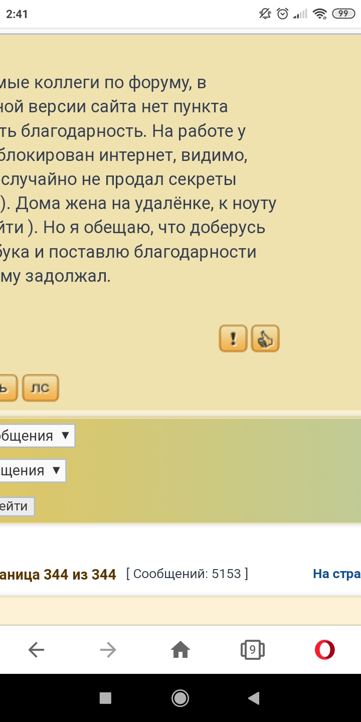 А у меня есть на телефоне.Pavel_77_ писал(а):Уважаемые коллеги по форуму, в мобильной версии сайта нет пункта поставить благодарность. На работе у меня заблокирован интернет, видимо, чтобы я случайно не продал секреты Родины ). Дома жена на удалёнке, к ноуту не подойти ). Но я обещаю, что доберусь до ноутбука и поставлю благодарности всем, кому задолжал.