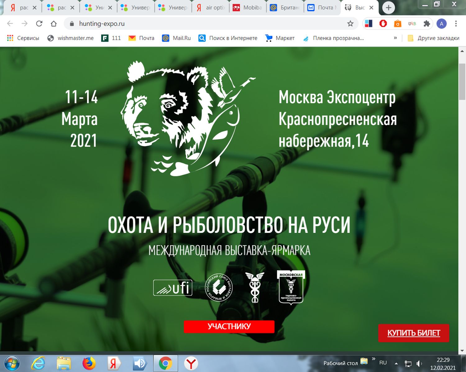 Вот какую инфу мне прислали на почту - Мэр Москвы Сергей Собянин подписал указ, в соответствии с которым с 22 января 2021 г. смягчается ряд действующих ограничений и возобновляется работа выставочных мероприятий в Москве.Уже совсем скоро - 11-14 марта, ждем вас в ЦВК Экспоцентр на международной выставке-ярмарке Охота и рыболовство на Руси.