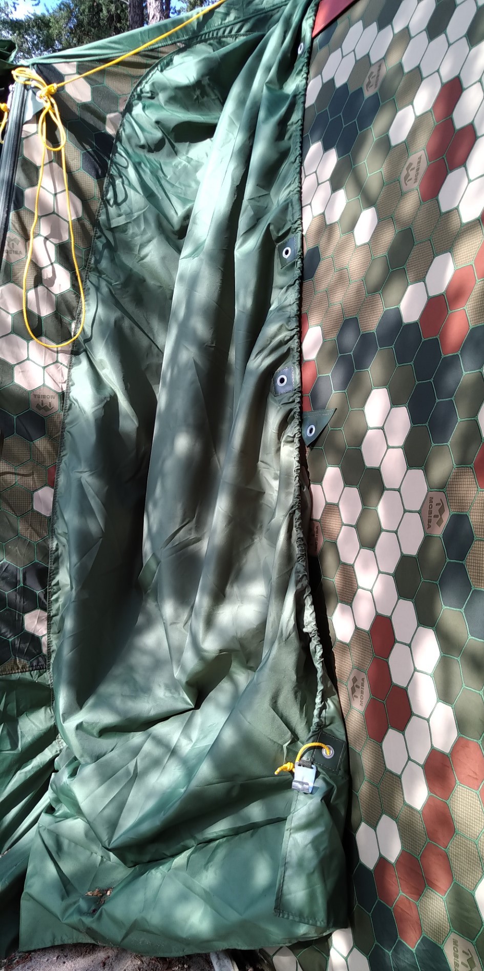 Обрати внимание на проходящую вдоль всей МБ-22 веревочку (на фото). Это и прилегание шлюза к куполу даст хорошее, и "монолитность" всей связки усилит. Кроме того на ВП-33М и шлюз длиннее, и люверсов в нем больше, чем на ВП-33 (на моем фото).