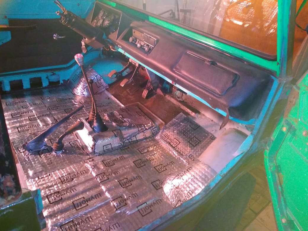 Салон обработан антикором, утеплен войлоком 10 мм. Правда пришлось резать панель, трамблер не влазит))). проклеен шумоизоляцией, линолеумный пол склеен по технологии "Инкрустации))" в стык. Сиденья Фольксваген, осталось руль поменять и движок подключить. В общем, скоро рванем!